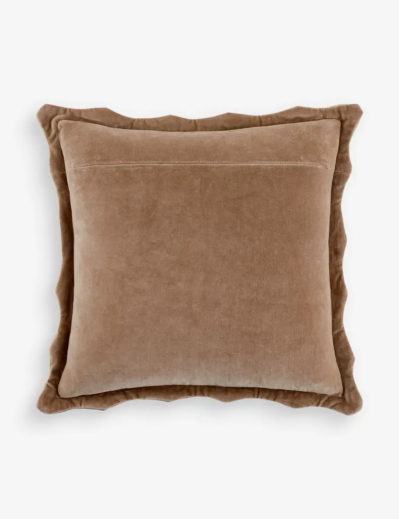 The Cora pillow brings a softly refined edge to any setting. Its waved flange creates a fluid shape that plays beautifully against the velvety finishchic yet understated. This timeless accent pillow is perfect for adding a touch of comfort and color to any curation.