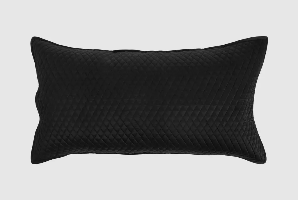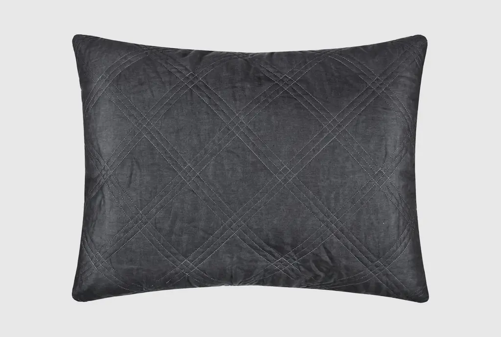 The cotton velvet fabric used for this pillow is soft to the hand and heavy in weight compared to other pillow fabrics. The fabric is overdyed and a quilting machine tailors small stitches in a specific shape to create the repeated pattern design. Every pillow is hand cut and sewn allowing for slight variation from piece to piece.