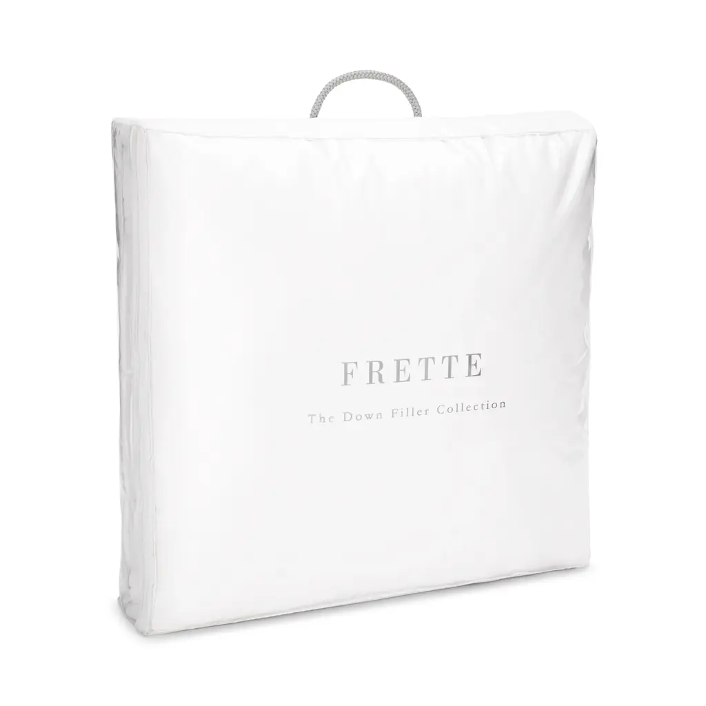 Frette's luxurious Cortina down pillows are filled with an 85/15 mix of white goose down and feathers, encased in 380-thread count cotton sateen. Details include double-stitched seams and decorative piping. This Italian made style has a firm density and is excellent at springing back into shape and retaining its enduring fluffiness.
