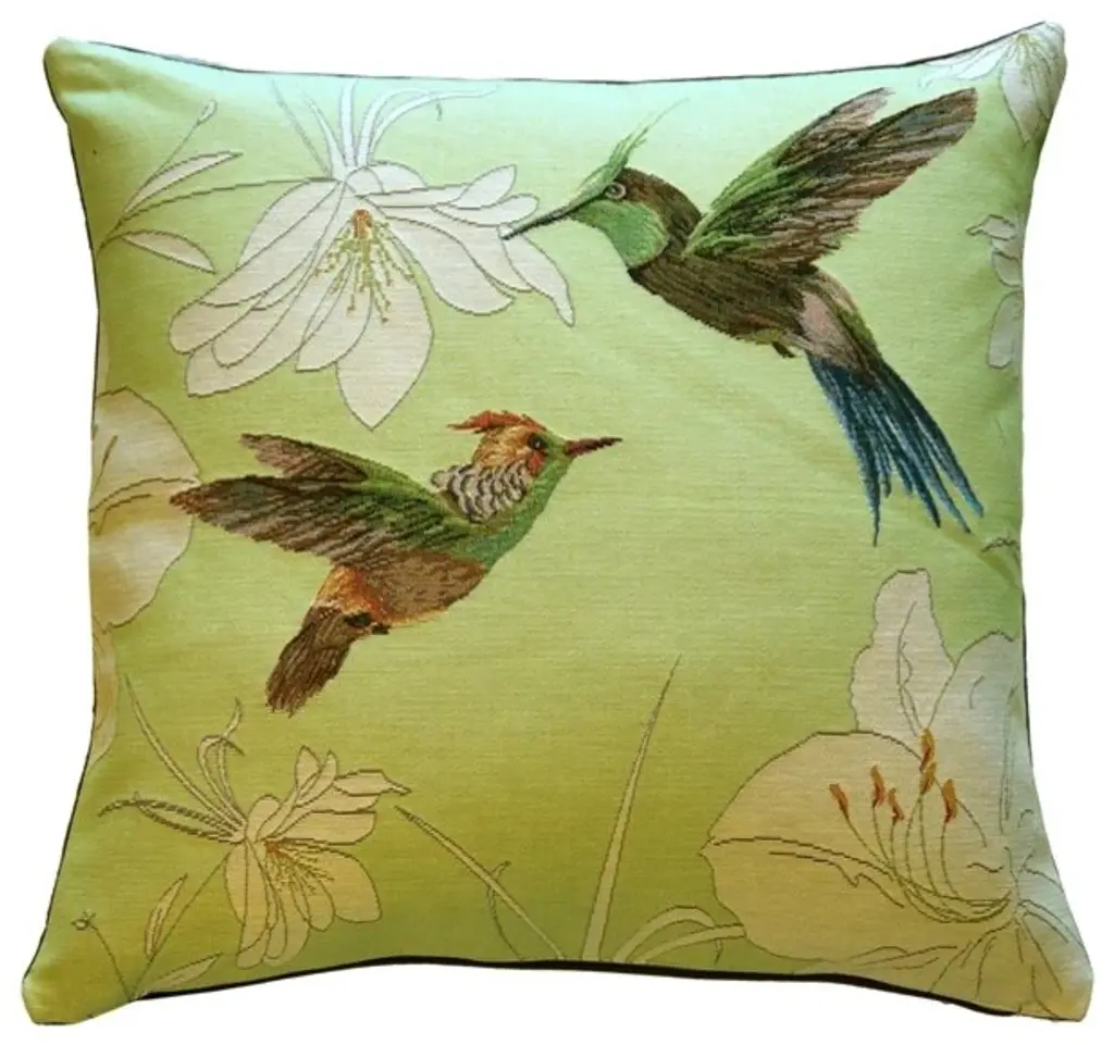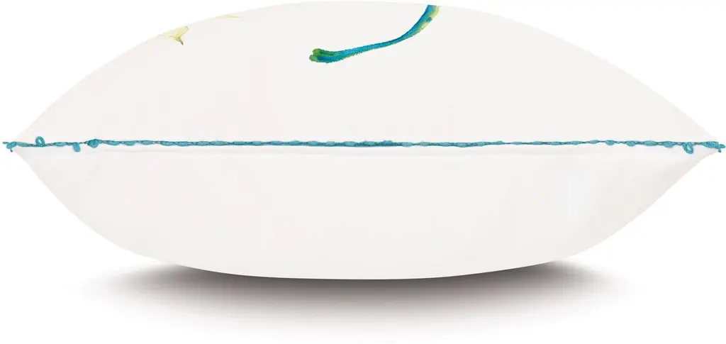 The hand-painted bird on the front makes this pillow as much a piece of art as it is a comfy cushion. And because it's made of easy-to-clean, UV-treated, mold-resistant, and soil-resistant materials, the pillow will retain its beauty for seasons to come. Solid back.