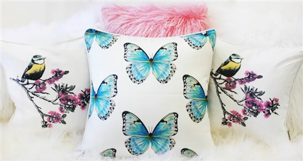 Around the world, butterflies are viewed as deep and powerful symbols of life, change, hope and rebirth. The Costa Rica Robin's Egg Butterfly pillow will be a beautiful and soulful addition to your home, and a gentle reminder to strive for peace and balance in life. Combine this large scale print pillow with the smaller scale or solitaire butterfly from the same collection. A Tracy Upton original design. Size: 20"x20" Square Fabric: Poly Linen - 100% Polyester / Medium Weight Design: Tracy Upton Original Design on Front and Back Finishing: Piped Seams / Concealed Zipper Closure Care: Hand Wash Cold / Air Dry Made in Canada in Pillow Decor's Vancouver workroom.