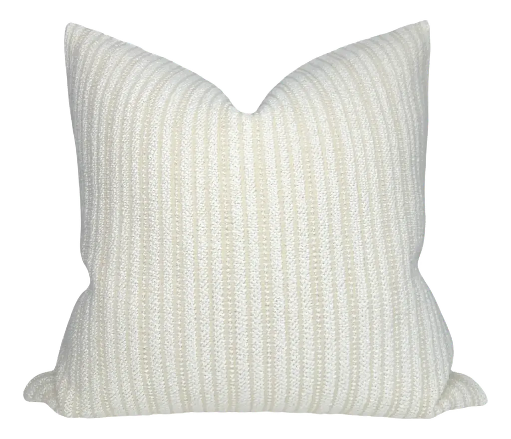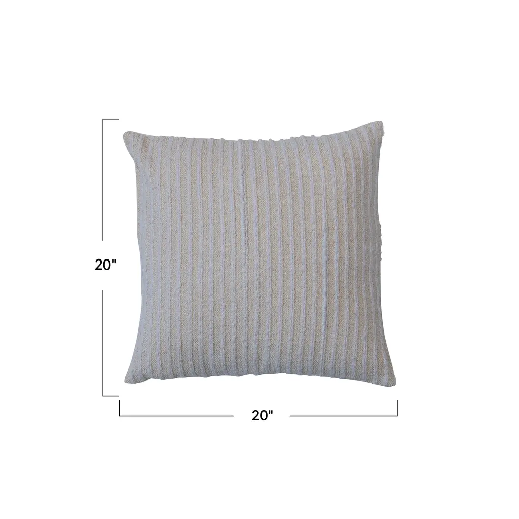 Cotton And Acrylic Pillow With Stripes And Gold Thread - Beige, White