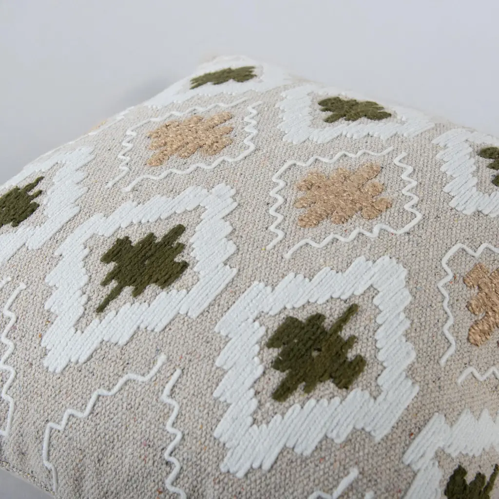 Cotton Canvas Embroidered Ikat Decorative Throw Pillow - Down Alternative