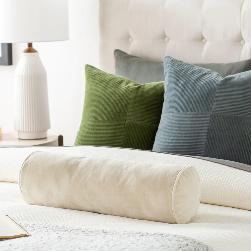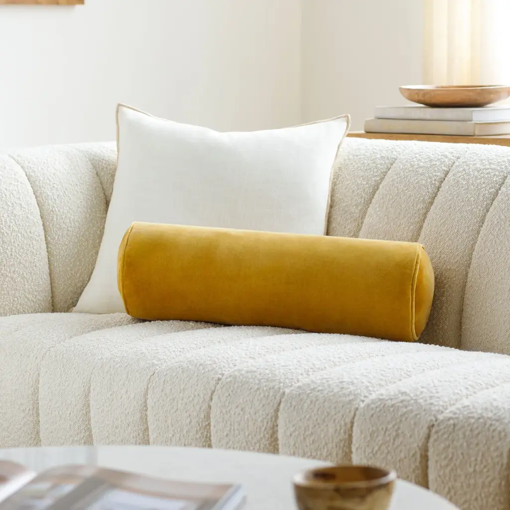 A luxurious and inviting accent for any modern home, the Cotton Velvet Bolster Pillow from Surya adds a layer of sophisticated comfort. Made in India, this beautiful pillow is crafted from 100% cotton velvet for a wonderfully soft texture and long-lasting durability. The classic, cylindrical bolster shape is perfect for adding support and style to a sofa or bed, while piped edges provide a refined, tailored finish. A fusion of simple form and luxurious material, it’s a timeless addition to your decor. Highlights: