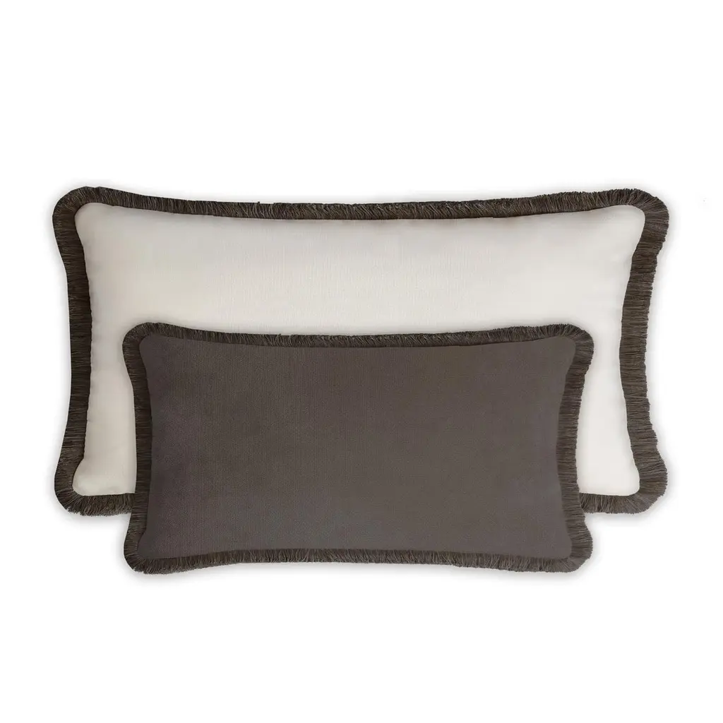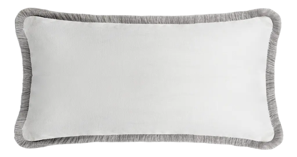 Couple Happy Pillow Beige And White Velvet With Fringes