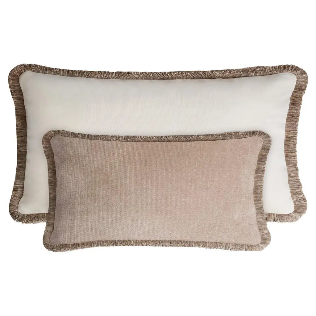 Couple Happy Pillow Camel And White Velvet With Fringes From Lo Decor, Set Of 2