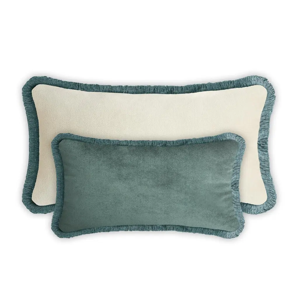 Couple Happy Pillow In Green And White Velvet With Fringes From Lo Decor, Set Of 2