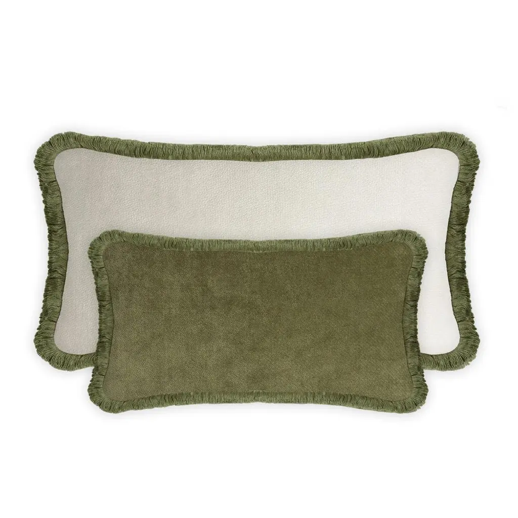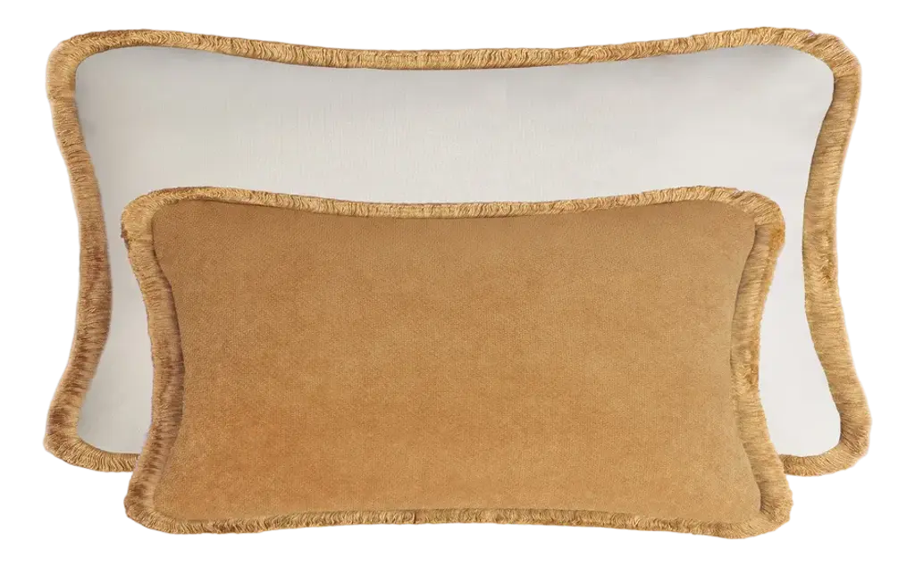 The contrasting chromatic scheme characterizing these couple of cushions lends it a distinct luxe yet restrained allure. It features soft padding in polyester fiber, while its rectangular silhouette is outlined by bold garnet cotton trimming outlining the light-beige velvet upholstery. The possibility to easily remove the cover simplifies its cleaning process. These accent pieces will make an eye-catching addition to a sophisticated living room, study or bedroom. All pieces are marked by simple versatility and charming hues that are easy to mix and match. Handmade in Italy. Size cm. 60x35 and 45x30 Labeled by Maker,Labeled with Country of Origin