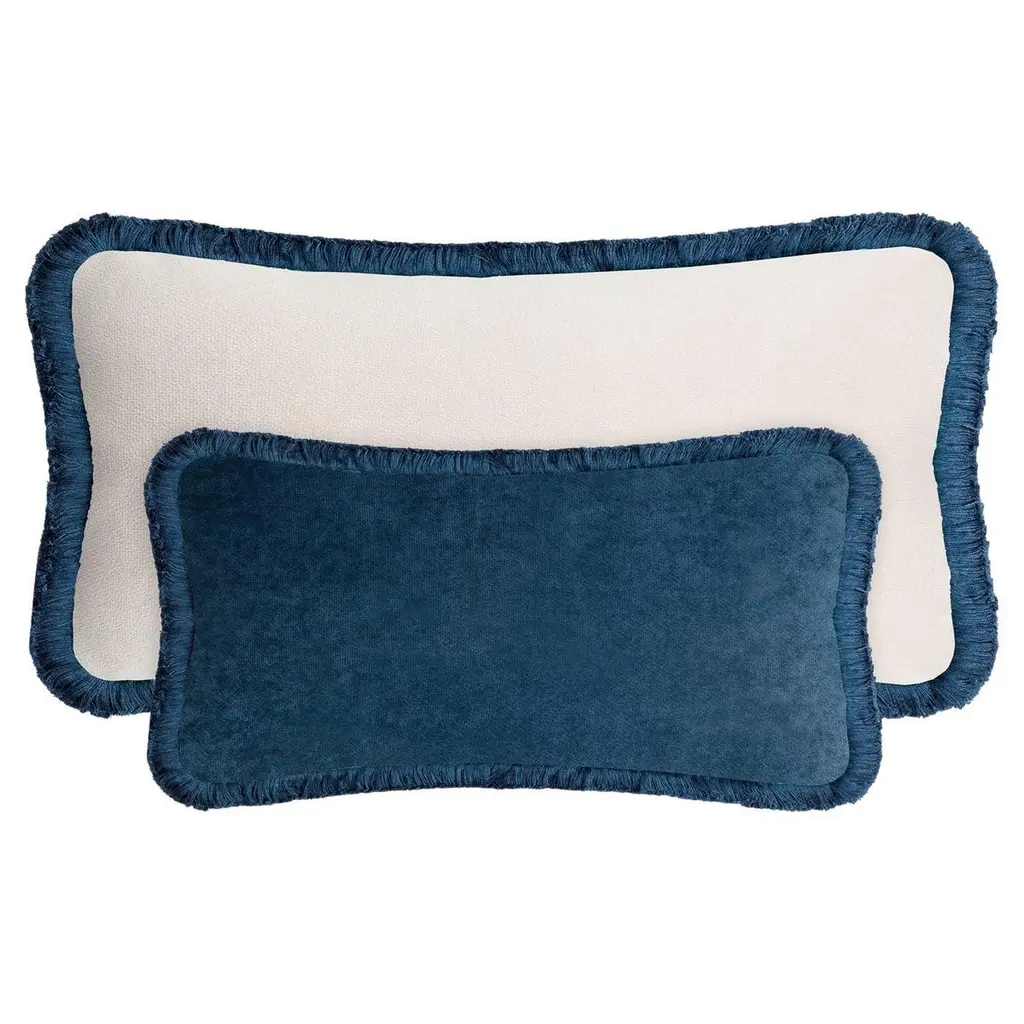 Couple Happy Pillow In Teal And White Velvet With Fringes From Lo Decor, Set Of 2