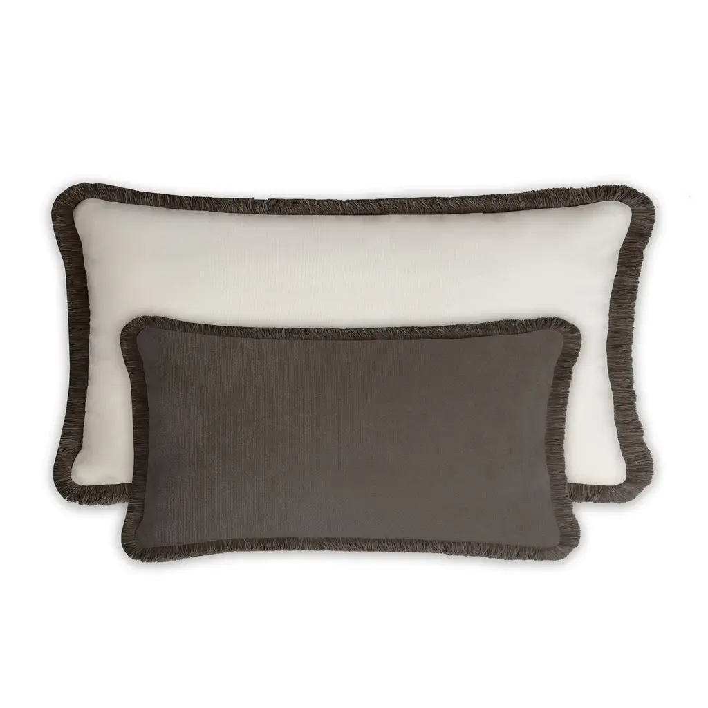 Couple Rectangle Carbon And White Velvet Happy Cushion
