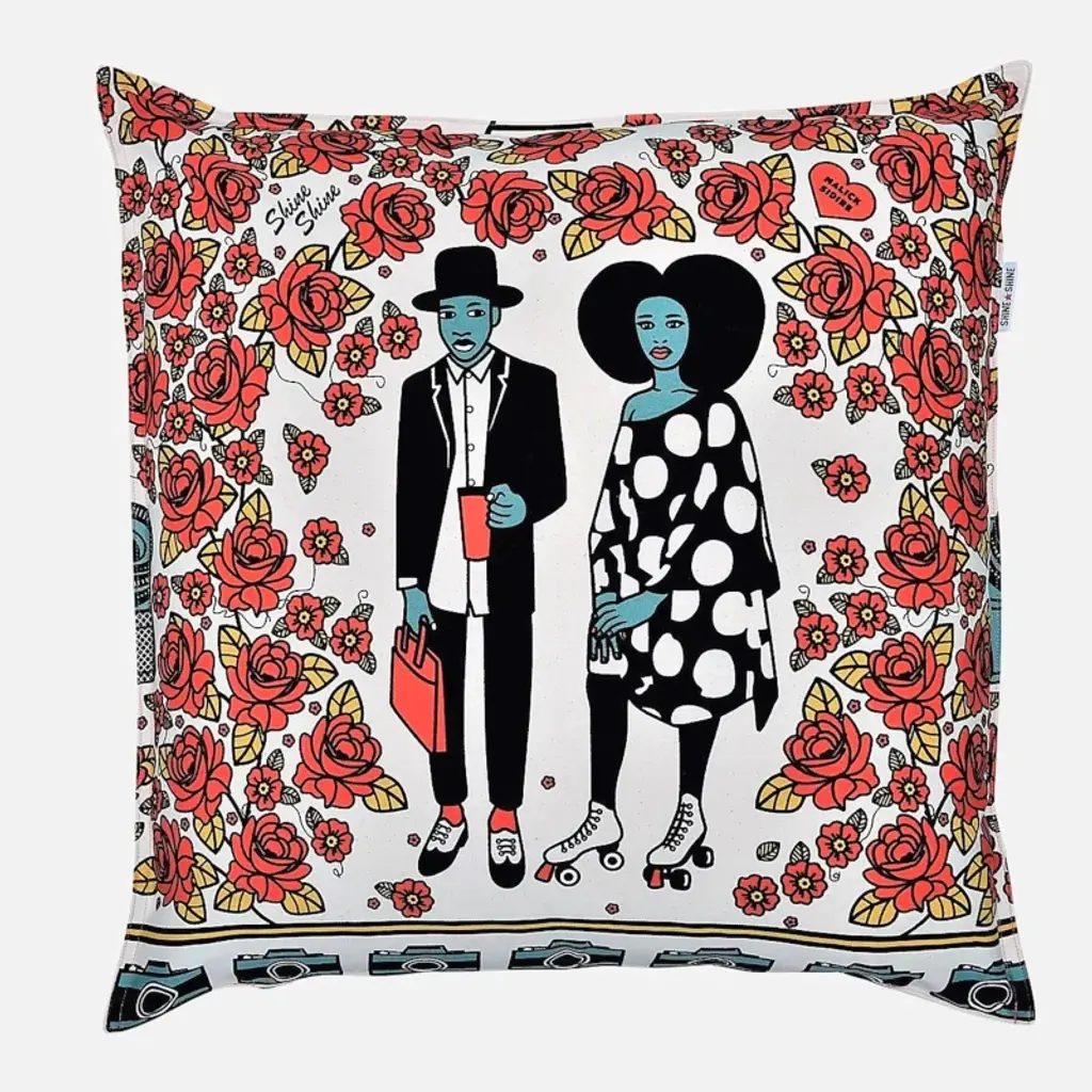 Upgrade your home decor with our beautiful Red Throw Pillows. These modern accent pillows feature a stunning red, black, and white pattern on both the front and back, making them a versatile addition to any couch, sofa, or bed., Mix and match these square throw pillows with other pieces in your home decor to create a unique and personalized style. Not only do these red decorative pillows add a pop of color to your space, but they also provide a cozy and comfortable touch, perfect for tossing on your couch or snuggling up with on your bed. Each red pillow cover comes with an insert included, so you can start enjoying them right away., Designed and handmade in South Africa, these red couch pillows are a tribute to the iconic Malian photographer Malick Sidibe, known for his captivating studies of young people in Mali in the 1950s-70s. These modern red pillows are a great way to pay homage to his work while also adding a touch of designer flair to your home decor. Whether you're looking to create a stunning statement piece for your living room, bedroom, or nursery, our red accent pillows are sure to impress. Don't miss out on the opportunity to elevate your home decor with these gorgeous red pillow covers. Order now and transform your living space into a work of art.