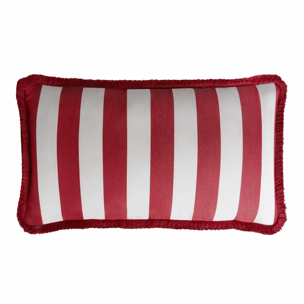 Couple Striped Happy Pillow Outdoor Fringes And Piping Red And White