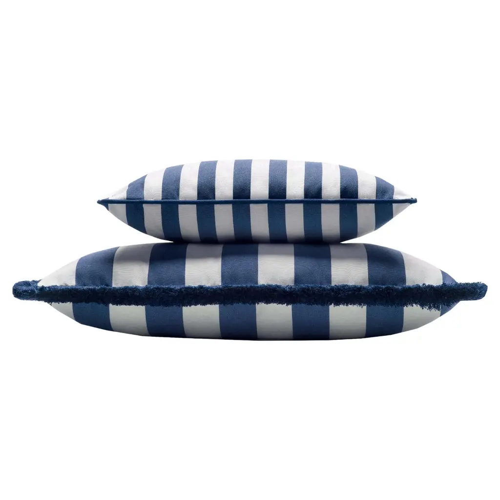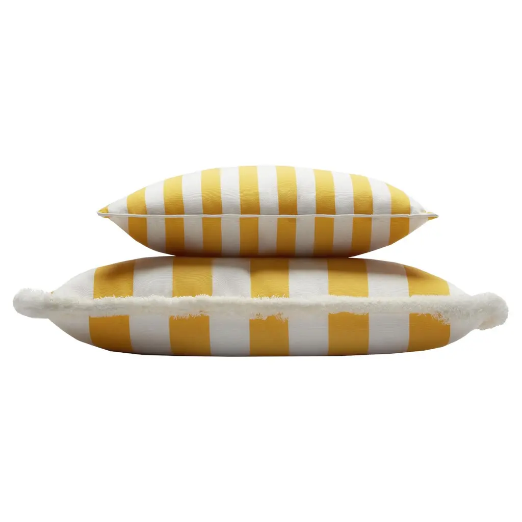 Clean lines, essential style, and a hint of vintage flair: this striped cushion is the perfect accent to bring charm and character to any outdoor space. The tone-on-tone fringe and piping adds a sophisticated detail, ideal for settings that are relaxed yet refined.Crafted from durable, weather-resistant fabric, it combines beauty and practicality with ease. Perfect on loungers, benches, or outdoor sofas to recreate the vibe of exclusive lounges—where comfort meets design.