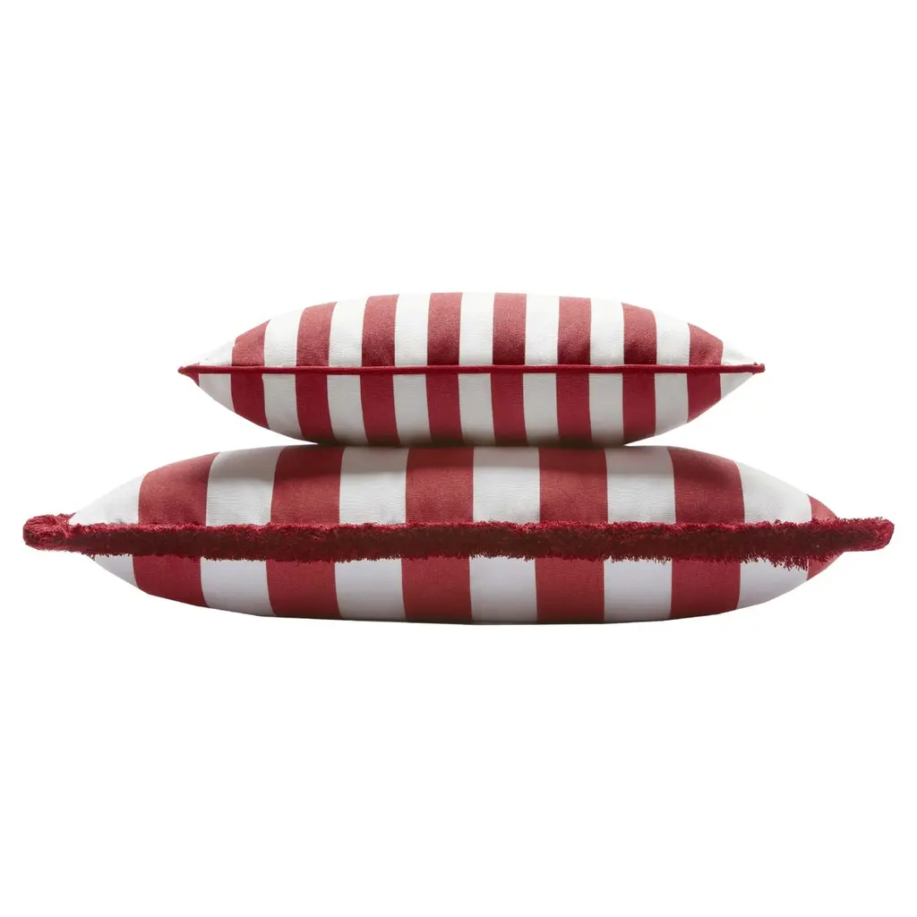 Couple Striped Happy Pillow Outdoor - White & Red - Fringes & Piping - Water Repellent
