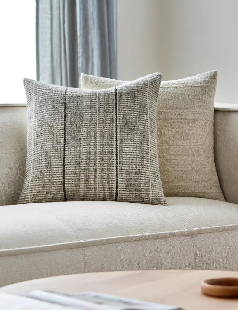Bring a touch of modern pattern to your curation with the Cowan accent pillow. Its chic design layers texture into the room in a minimalist palette perfect for mixing and matching with other throw pillows.
