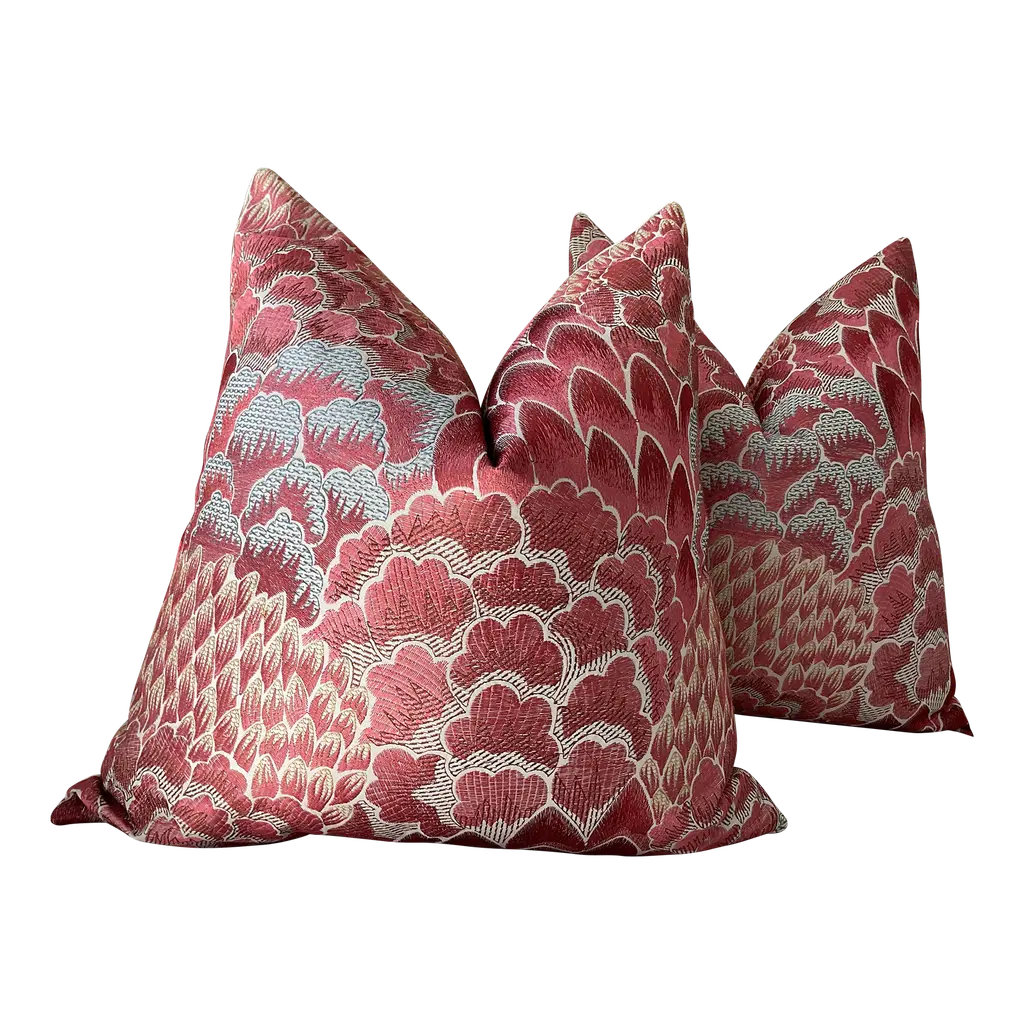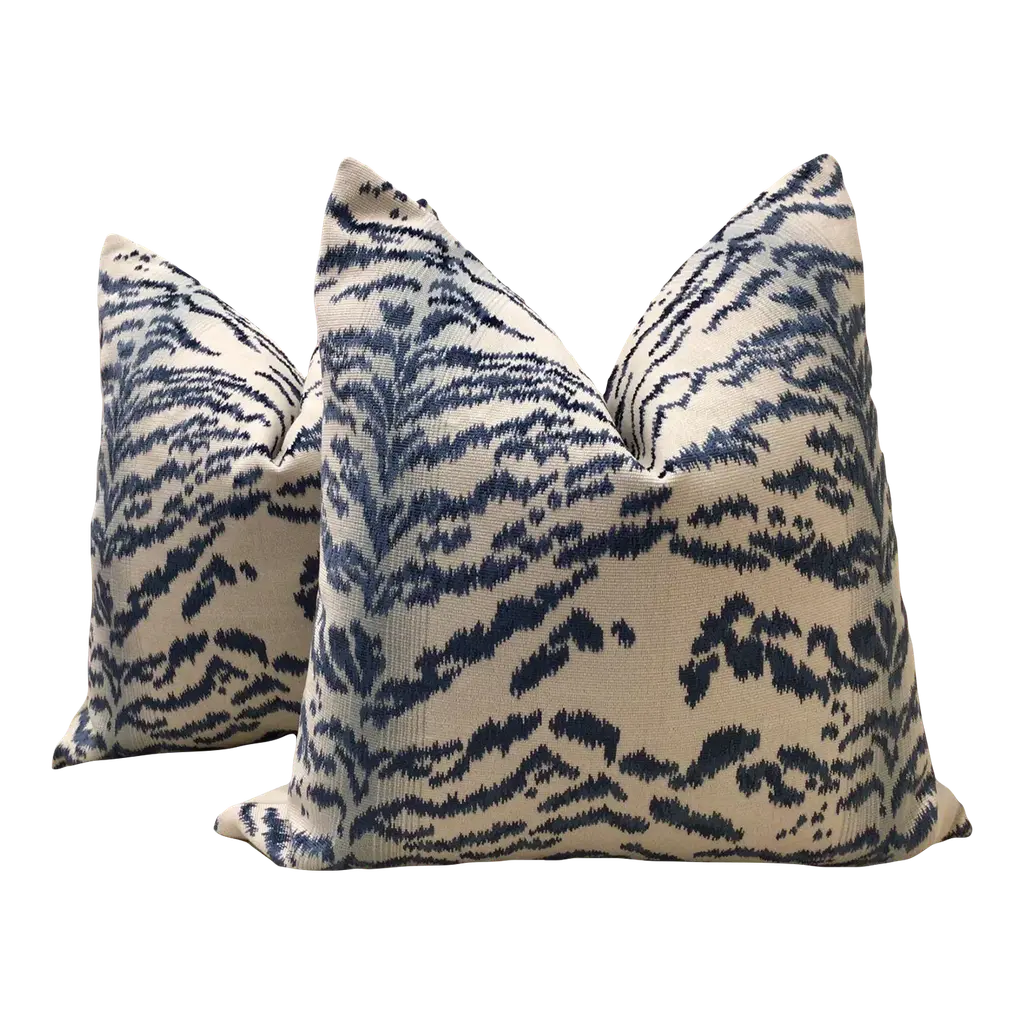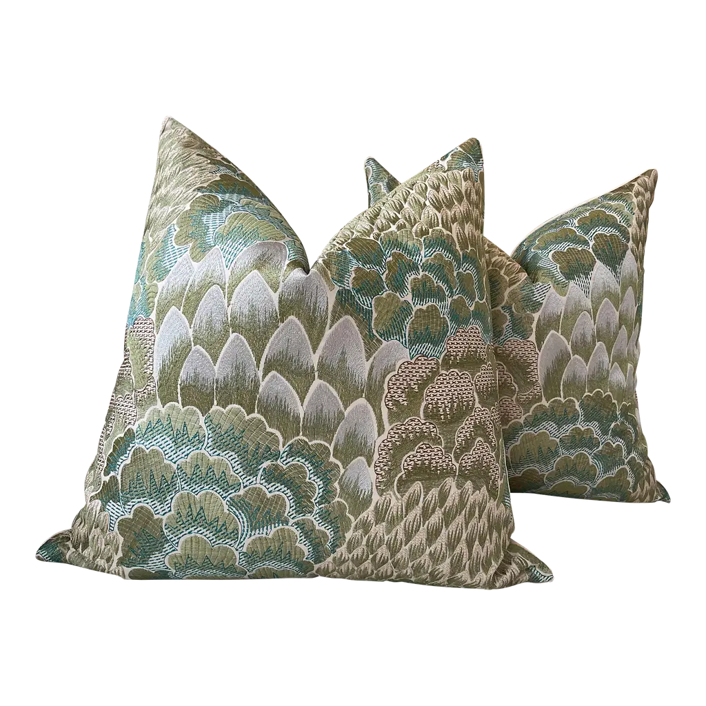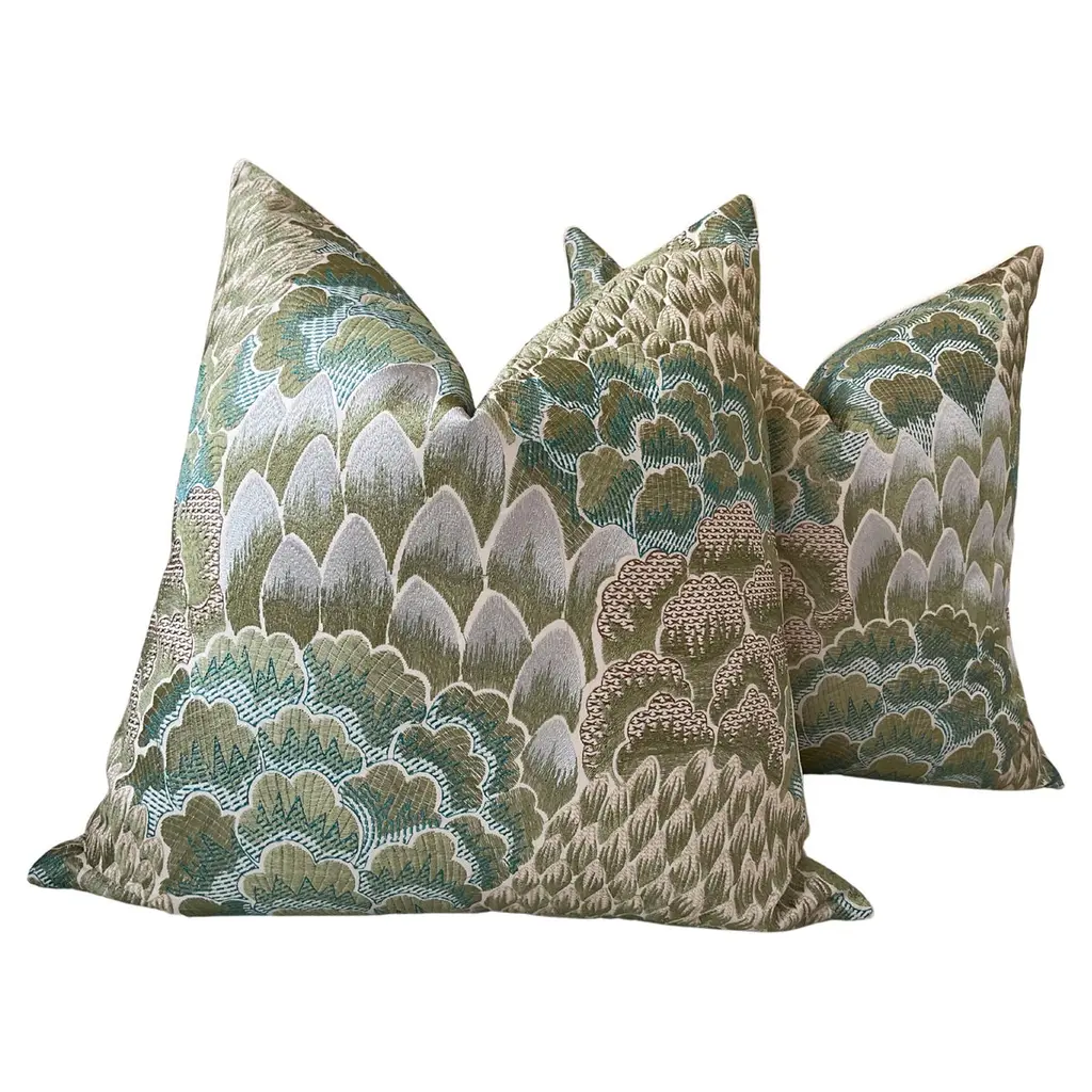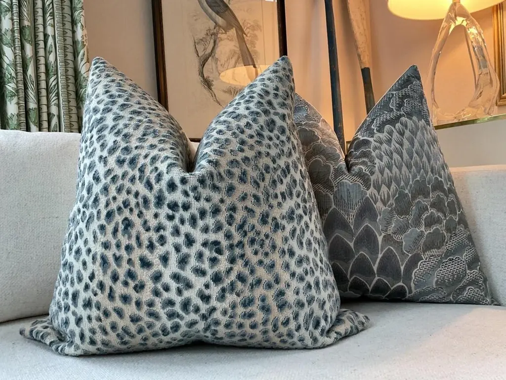 Cowtan and Tout does it again in a stunning, rich shade of cloud blue and ivory; "Coromandel" is sure to add elegance to any decor. Employing a crewel-type embroidered stitch, this pattern is richly textured and showcases intricate looming techniques. Pillows are single-sided with the fabric and backed in coordinating soft ivory velvet.This listing will arrive as a pair of 22” down-filled pillows with closure by way of an invisible zipper. Complete with generous down inserts, this set will arrive ready to use.About UsAt Accent Marks, each designer pillow is crafted with care using the finest hand-selected fabrics and trims, paired with durable, discreet invisible zippers. We specialize in creating beautiful, high-quality pieces that elevate your home decor. While most of our listings feature 22" pillow pairs, we also offer a range of sizes and single pillow options to suit your needs. All of our Accent Marks pillows are proudly made in the United States.If you don't see the fabric you're searching for, please reach out via message as we have other fabrics available upon request and can create anything that you like. Thank you for visiting Accent Marks!