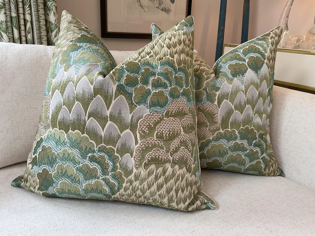 Cowtan And Tout “Coromandel” In Emerald Pillows With Plush Down Inserts- A Pair