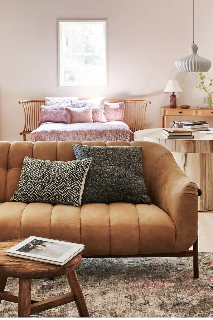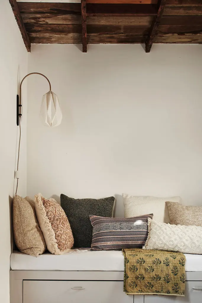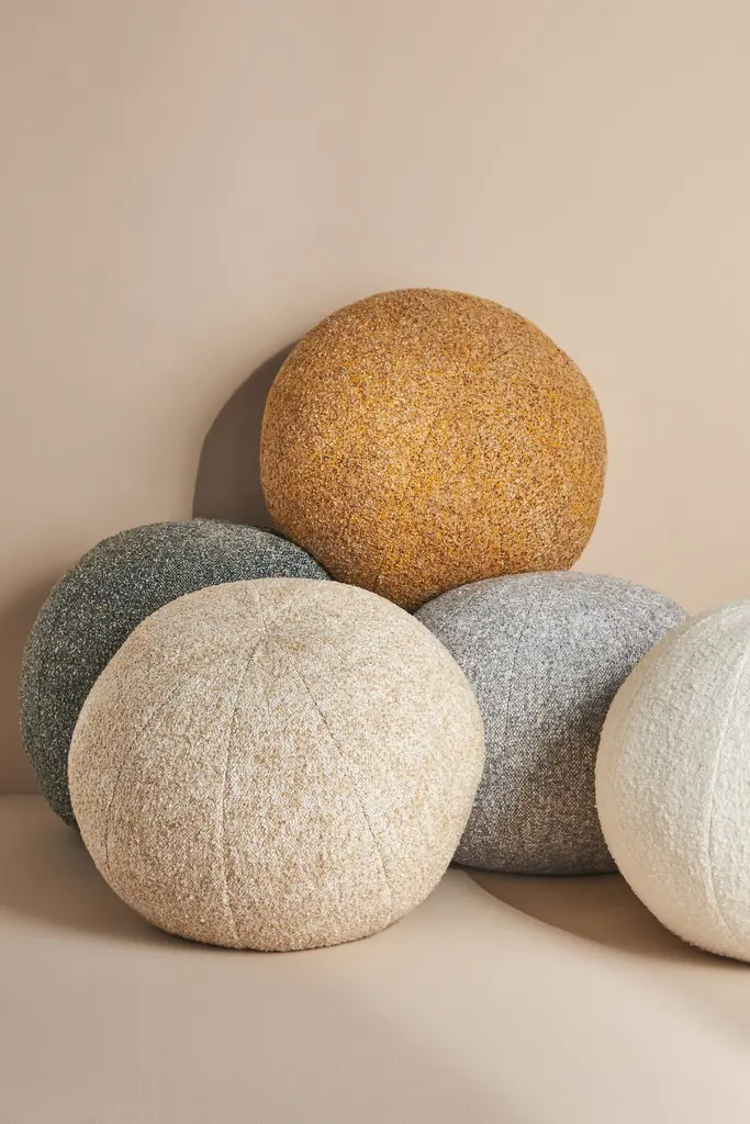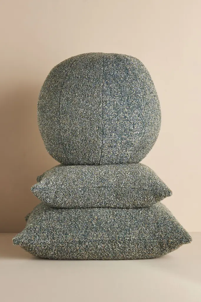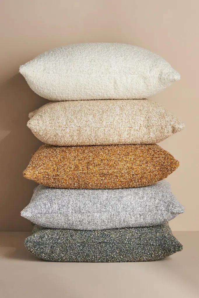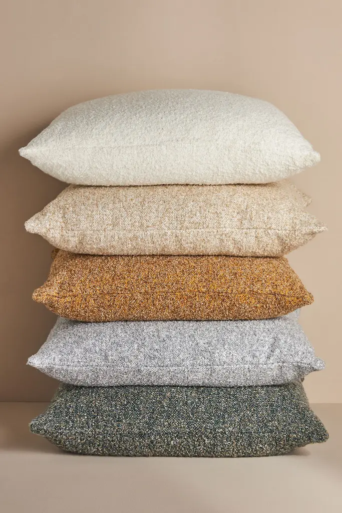 Popular amongst mid-century designers of the 1940s, bouclé is characterized by its curly, knotted, touchable texture. Here, the cozy material finds its way onto a plush pillow available in a range of contemporary hues that lend a comforting touch to any interior.
