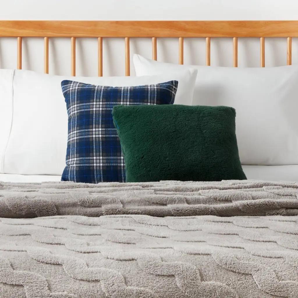 Transform the look of your indoor space with this Cozy Faux-Shearling Decorative Throw Pillow from Room Essentials™. This 18-inch square pillow showcases a faux-shearling surface for a cozy, textural vibe. Featuring a soft fabric exterior and a well-filled interior, the fuzzy throw pillow adds the right amount of comfort and style to your sofa, couch, bench or bed.Room Essentials™: Everyday Value