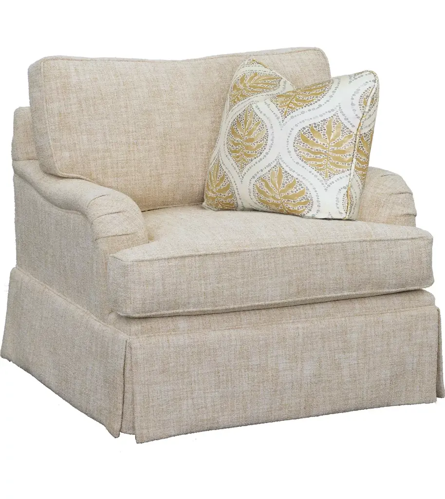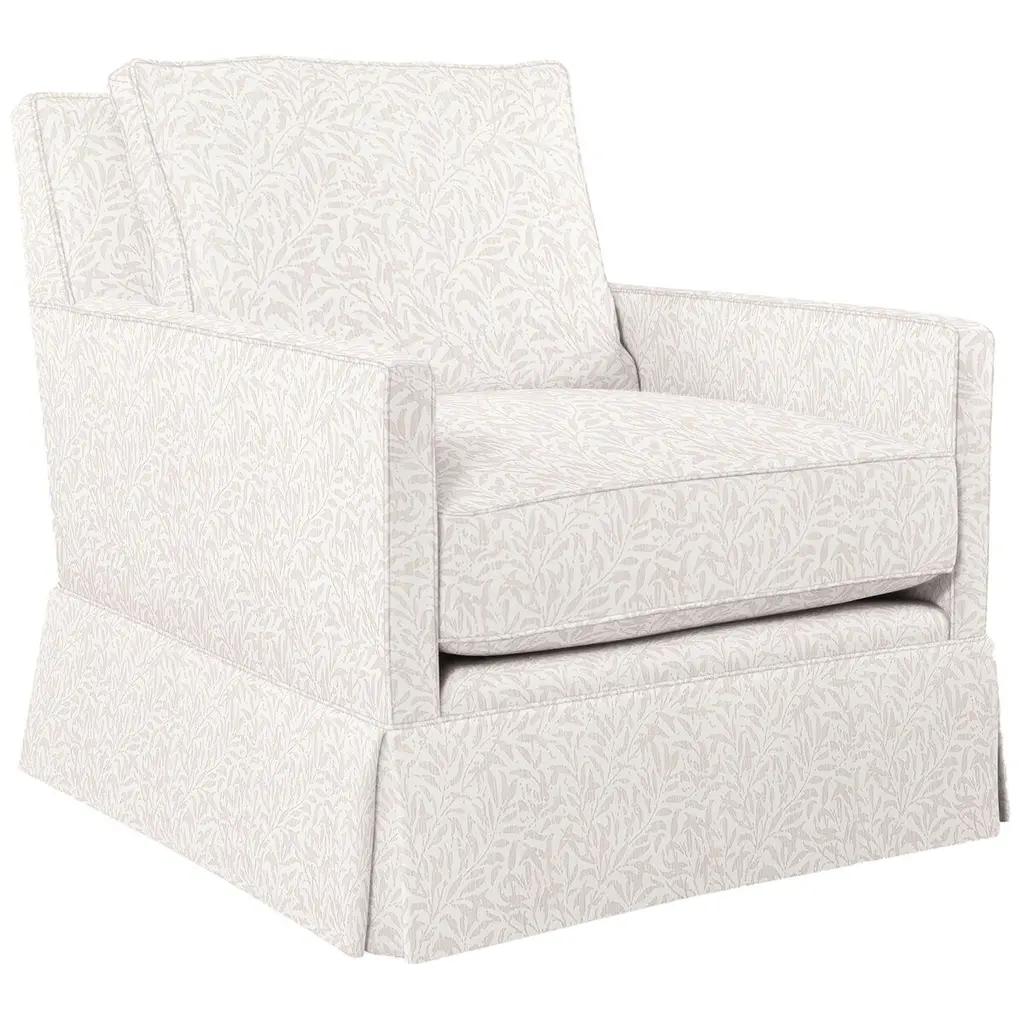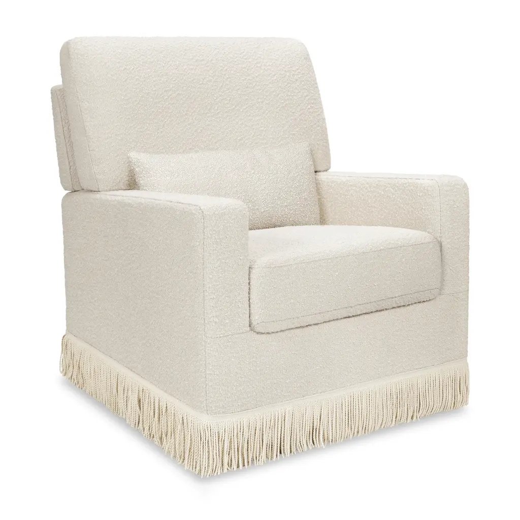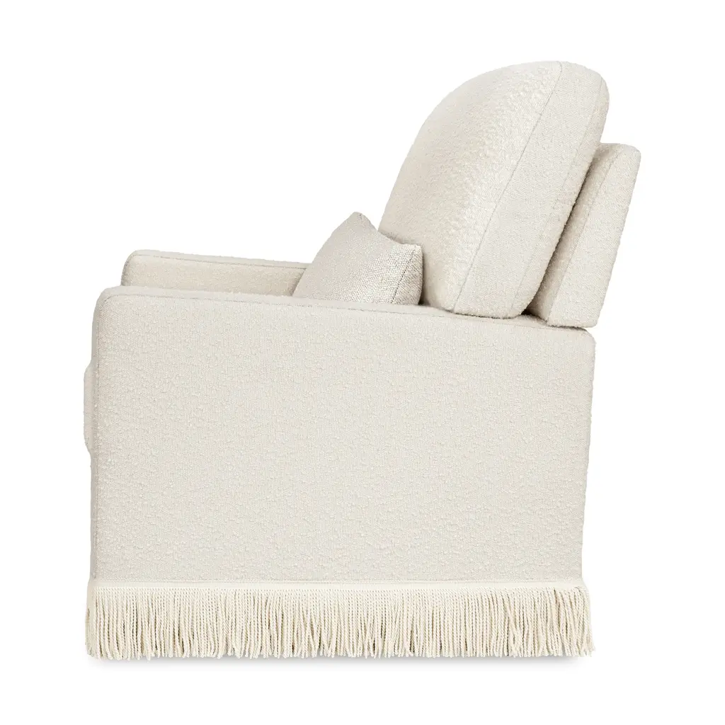 Experience ultimate comfort and style with the Crawford Pillowback Comfort Swivel Glider from Namesake. The plush pillow back cushion and wide seat provide unparalleled nursery comfort, while the smooth gliding and convenient swivel motion make it easy to soothe your baby to sleep. With a beautifully crafted design and stain-resistant upholstery for everyday living, this glider is a must-have for any nursery. Highlights