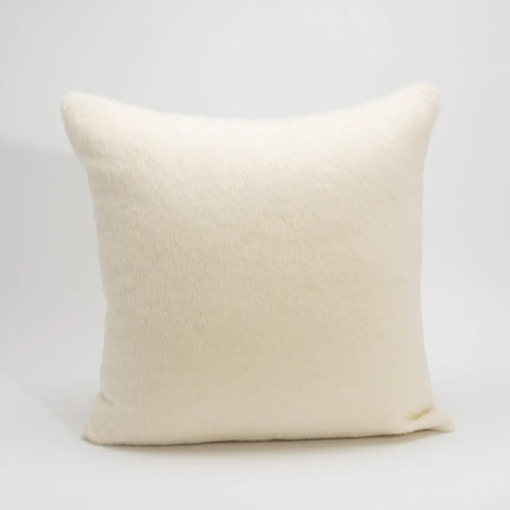 Refined simplicity meets tactile luxury in this 22" decorative pillow, upholstered in richly textured cream alpaca. Soft to the touch and visually elegant, it brings warmth, depth, and sophistication to any interior. The neutral tone and plush feel make it a versatile accent—perfect for curated sofas, lounge chairs, or layered bedding. Finished with meticulous attention to detail and paired with a premium insert, this pillow is ready to style and made to impress. Available exclusively through our luxury showroom collection.