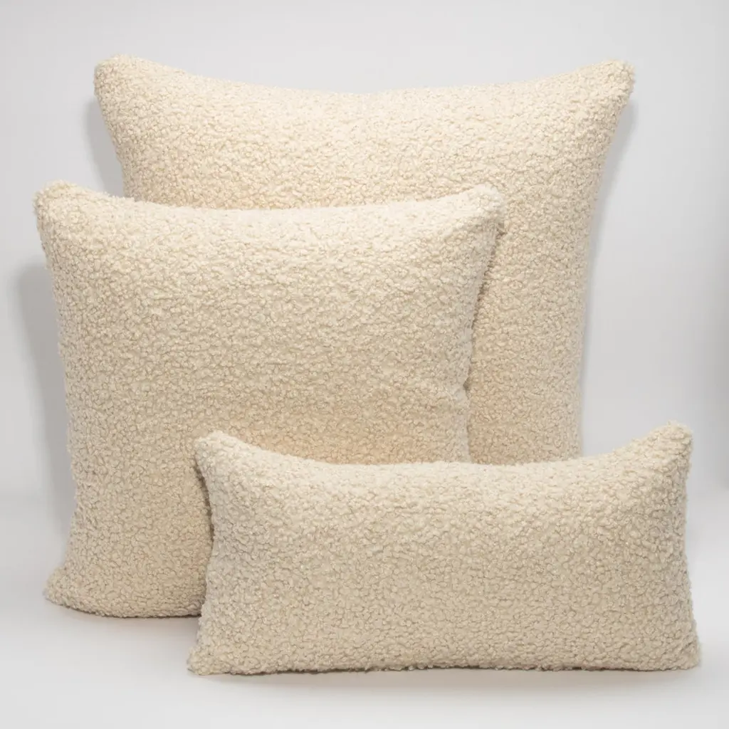 Refined simplicity meets tactile luxury in this 22" decorative pillow, upholstered in richly textured cream bouclé. Soft to the touch and visually elegant, it brings warmth, depth, and sophistication to any interior. The neutral tone and plush feel make it a versatile accent—perfect for curated sofas, lounge chairs, or layered bedding. Finished with meticulous attention to detail and paired with a premium insert, this pillow is ready to style and made to impress. Available exclusively through our luxury showroom collection.