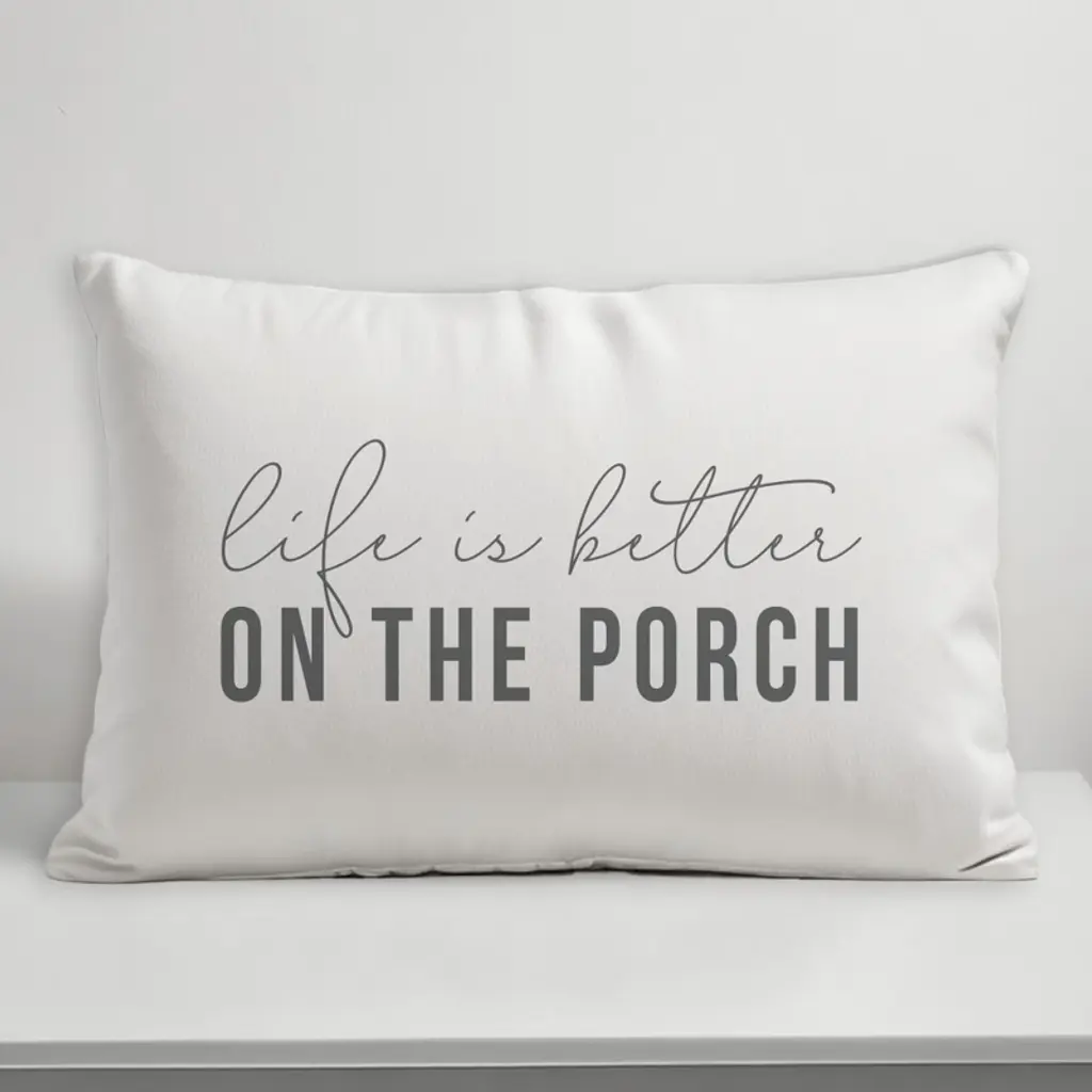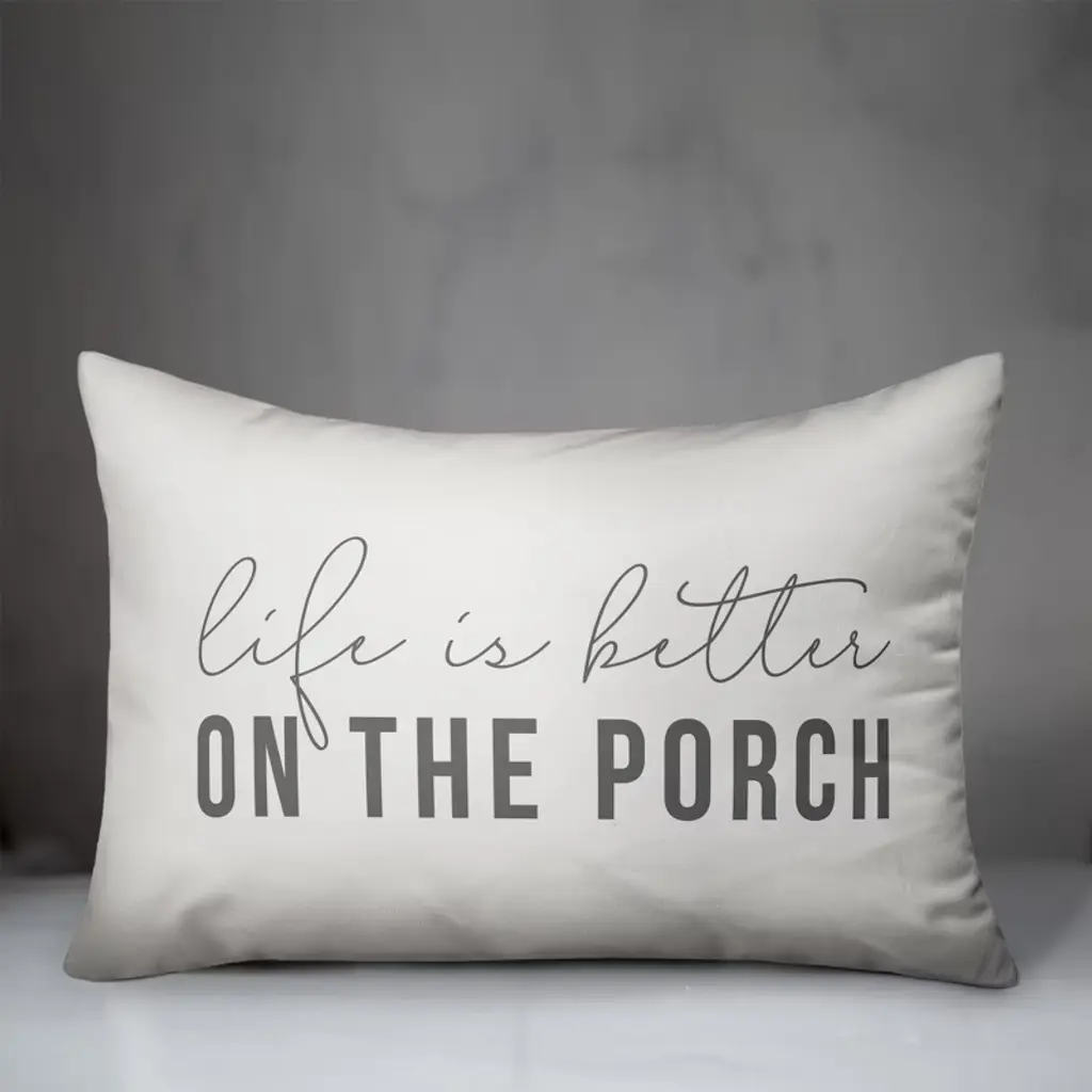 Creative Products Life Is Better On The Porch White And Grey 14x20 Indoor / Outdoor Pillow
