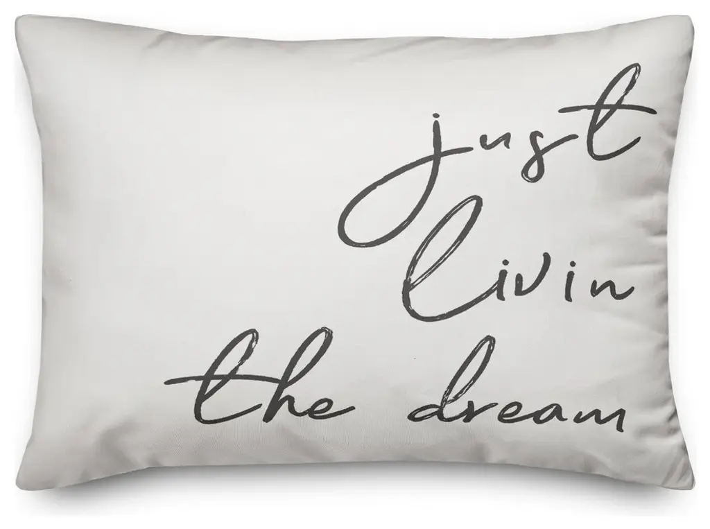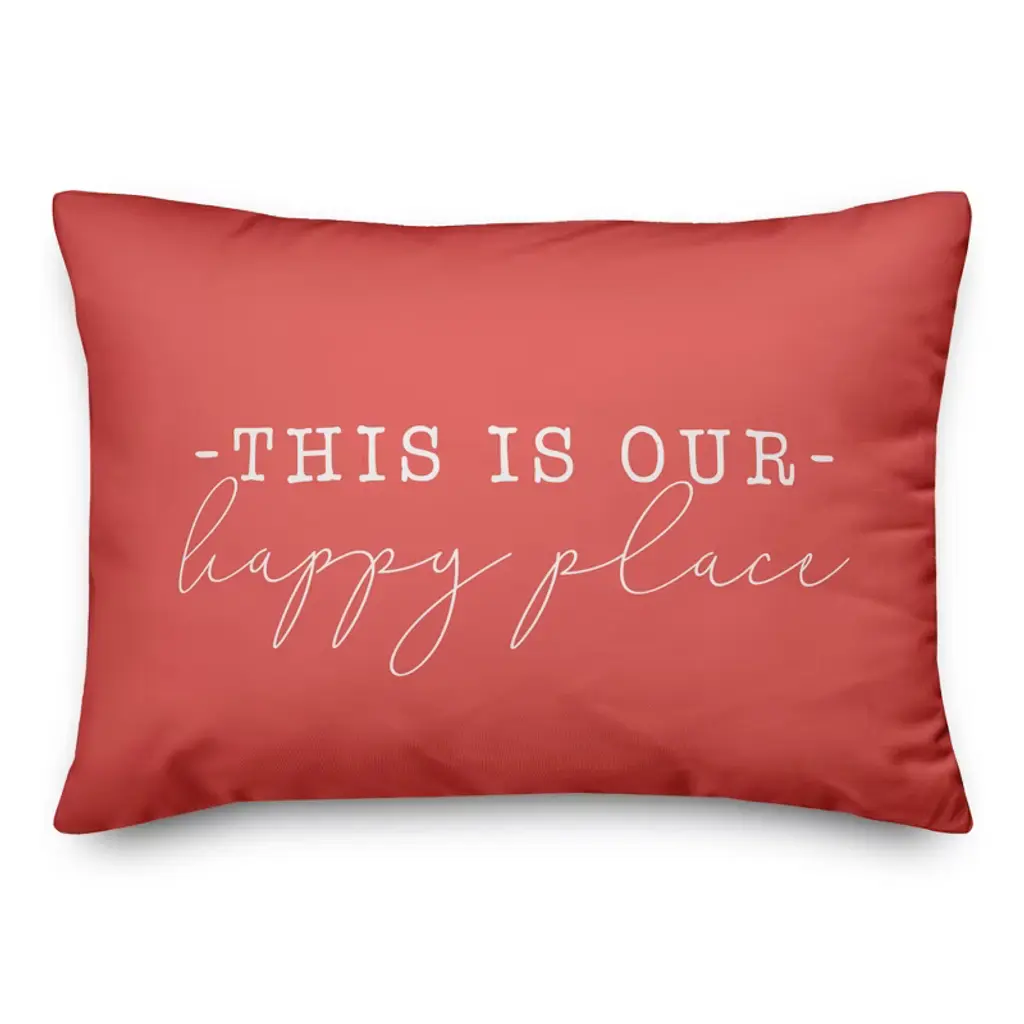 All of your guests will feel at home when greeted by this typography pillow. Great for on the front porch or inside your entryway. Designed and printed in the United States, this throw pillow is sure to add joy to your space. Our beautiful indoor/outdoor pillows are designed and printed in the USA. Double-sided Print 14x20 Cover Material: Spun Polyester Fill Material: Polyester/Polyfill Removable Cover: No No UV protection Stain, mildew, and water resistant Washing Method: Spot clean and dry clean only