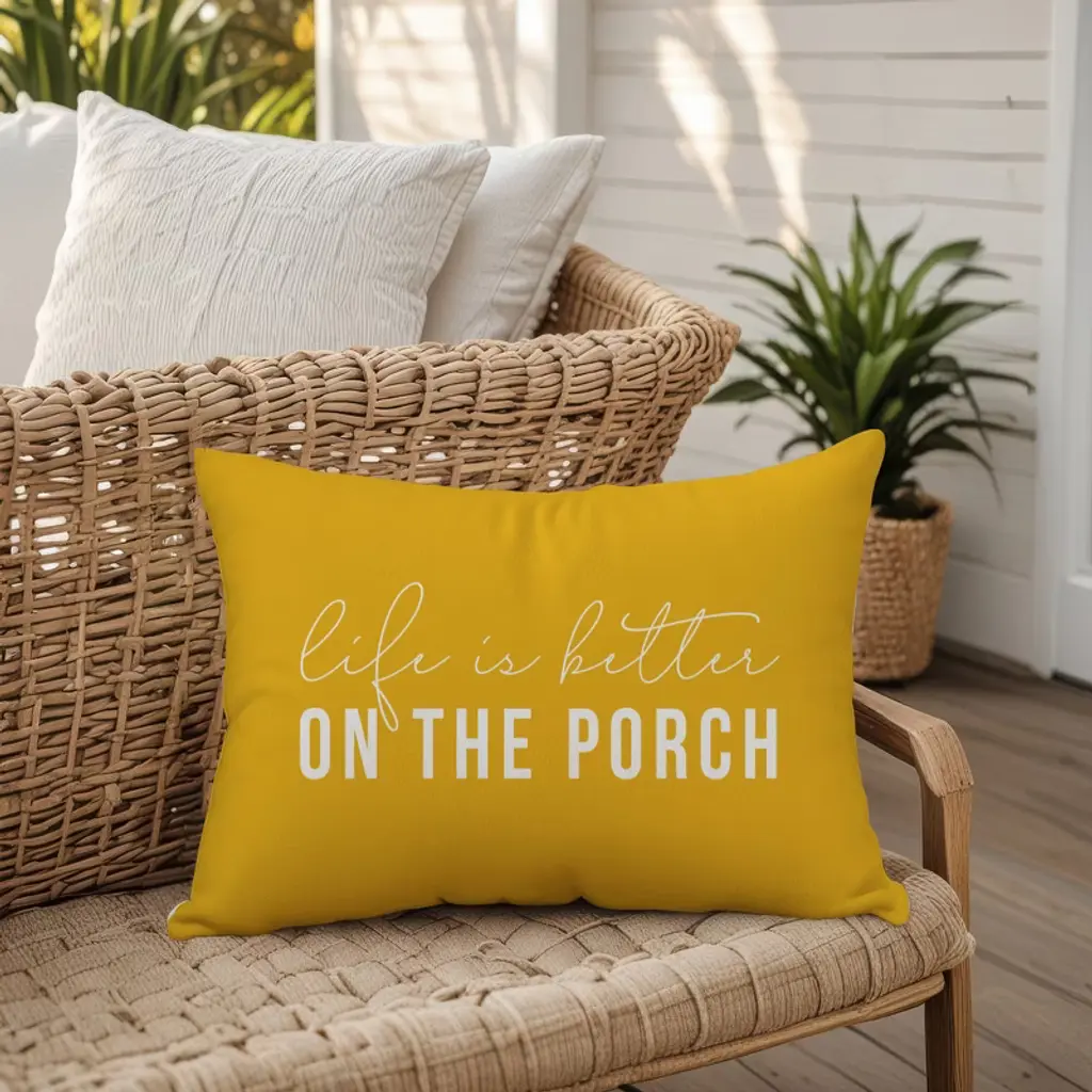 Creative Products Life Is Better On The Porch Yellow 14x20 Indoor / Outdoor Pillow