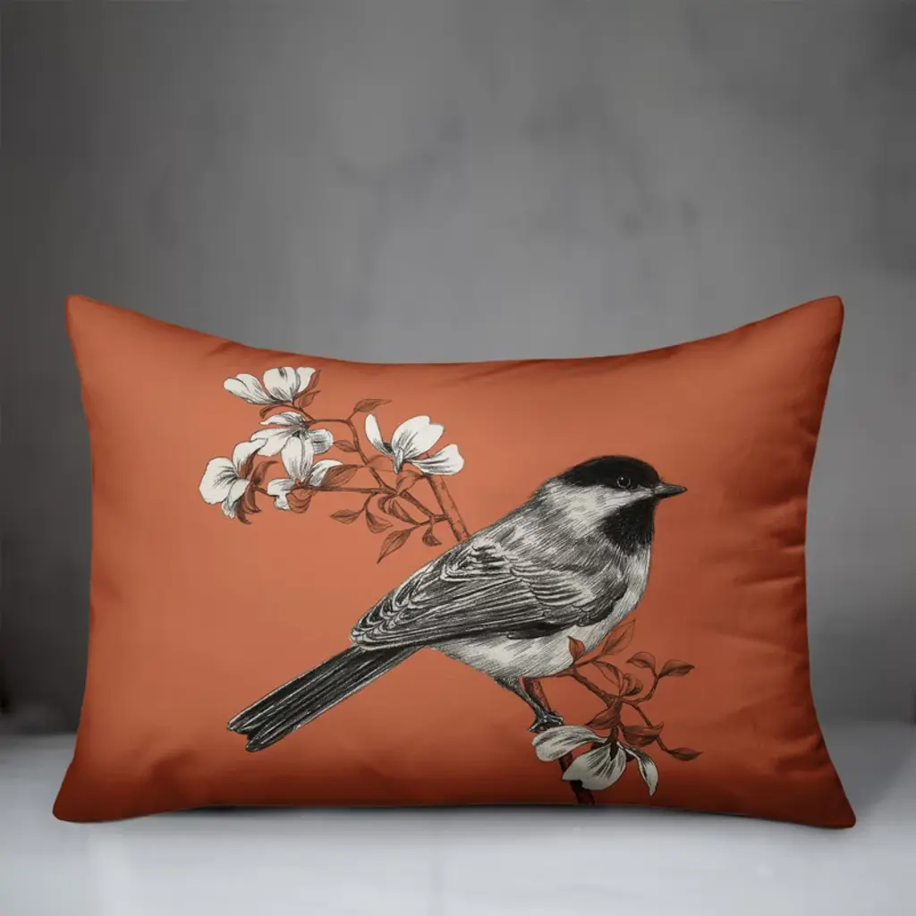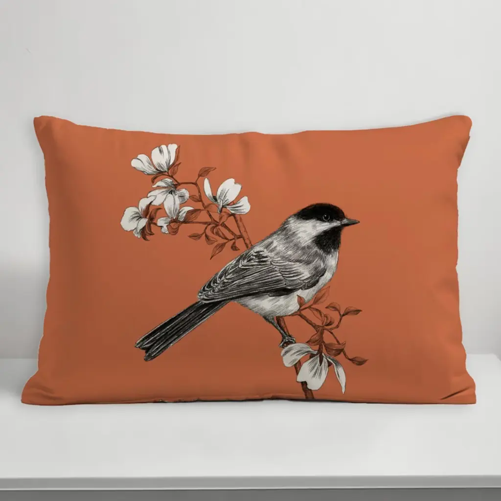 Creative Products Orange Chickadee And Flowers 14x20 Indoor / Outdoor Pillow