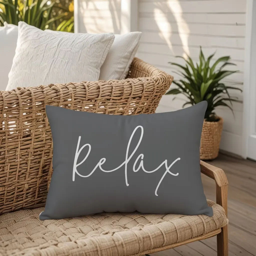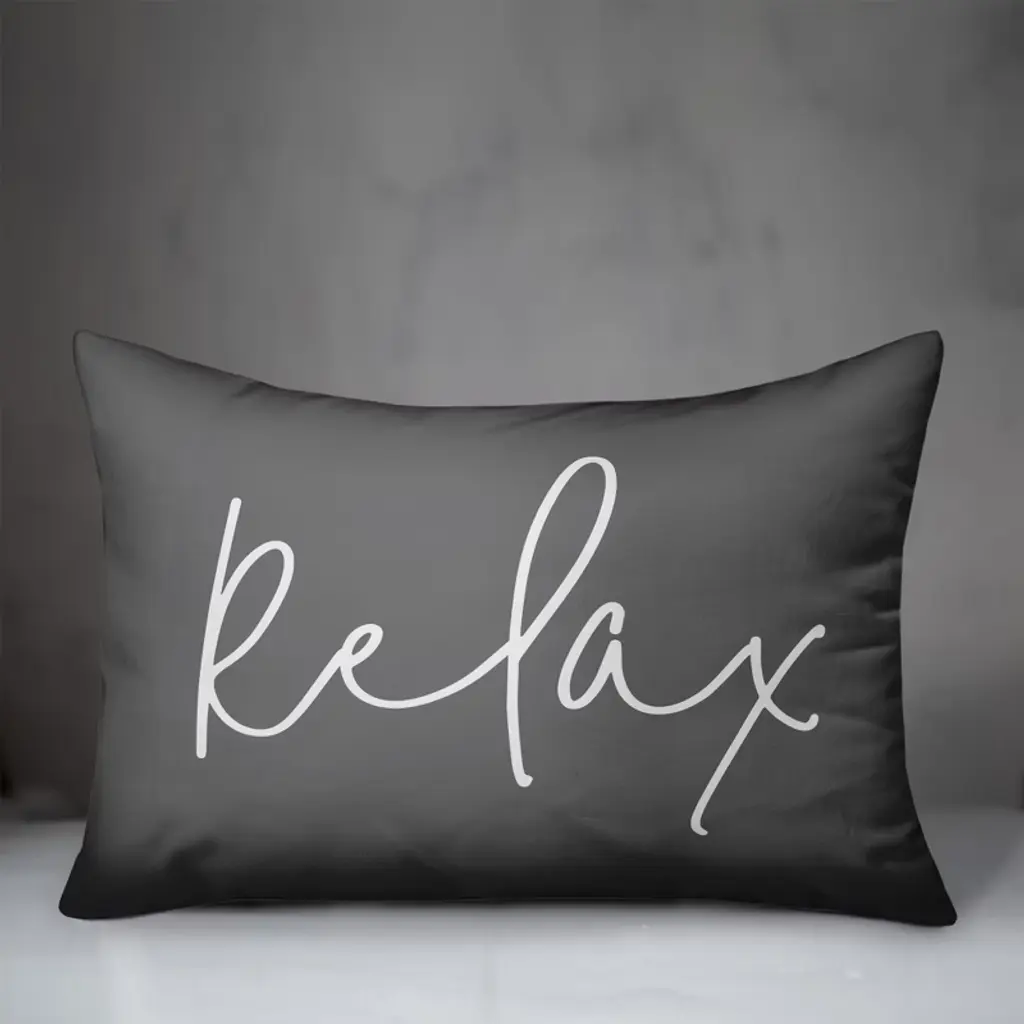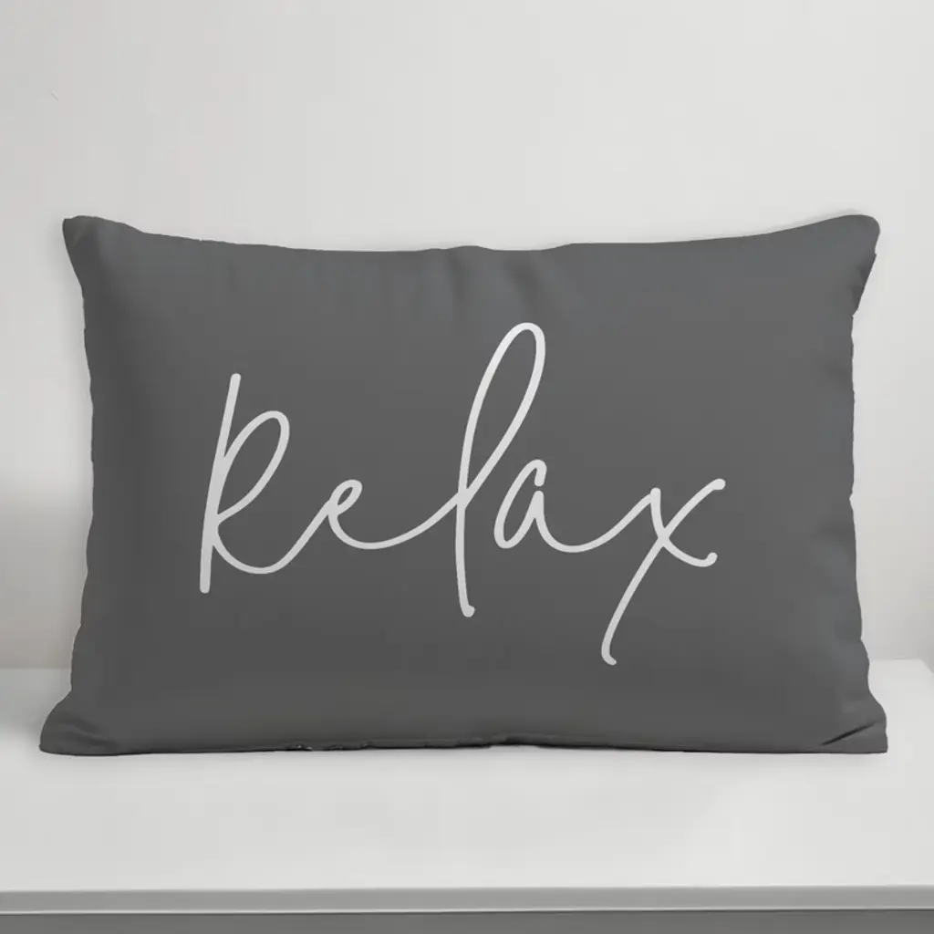 Creative Products Relax Thin Script Grey And White 14x20 Indoor / Outdoor Pillow