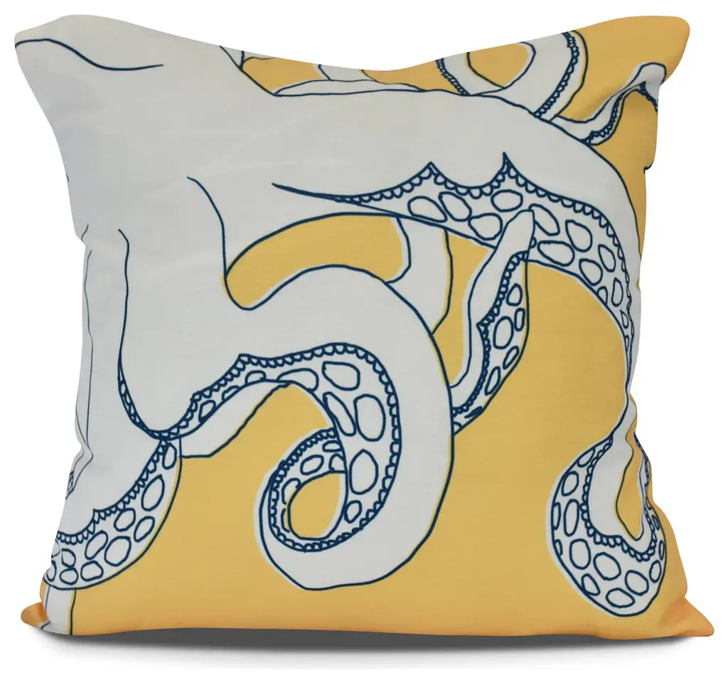 Creature Of The Sea Geometric Outdoor Pillow,gray,18 X 18 Inch