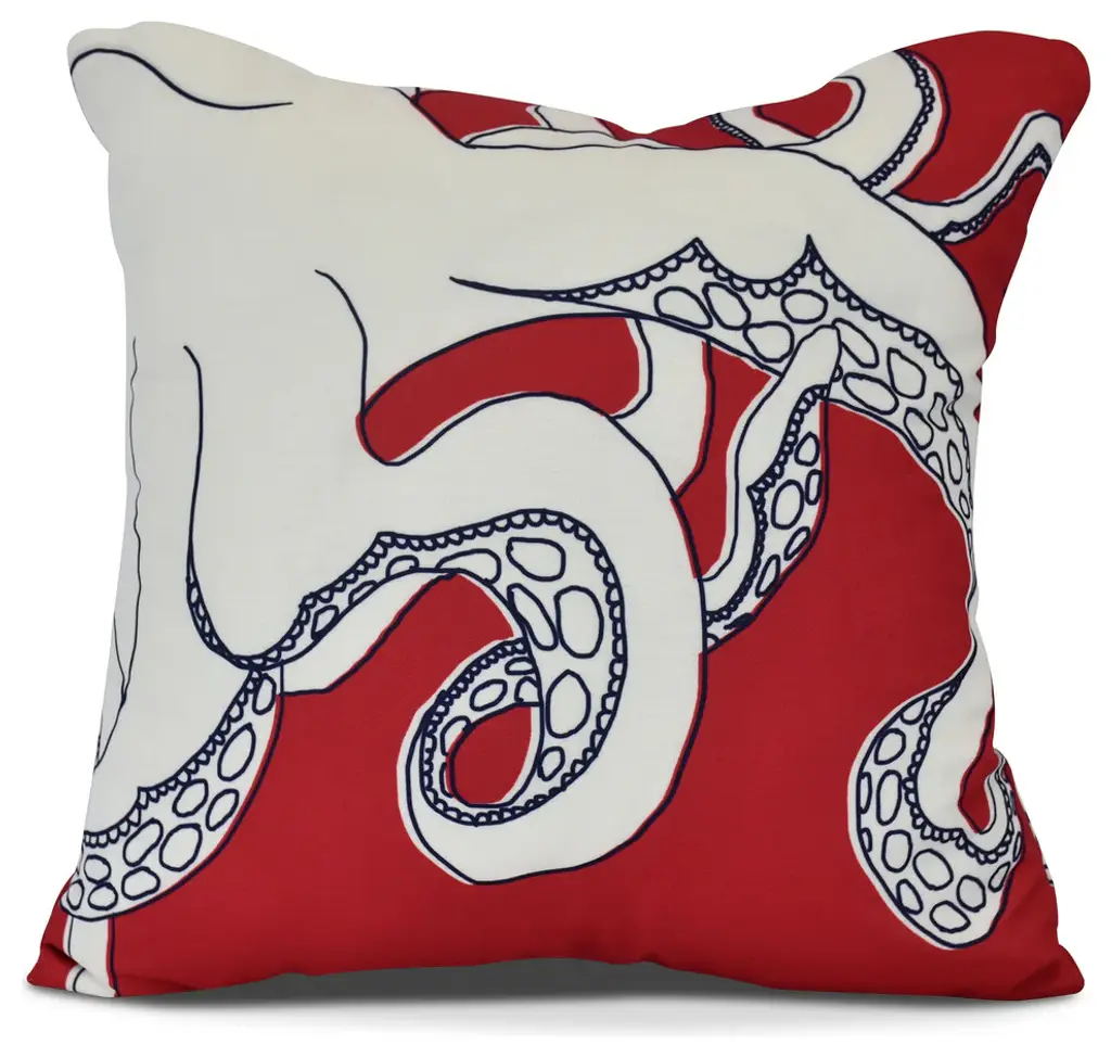 Creature Of The Sea Geometric Outdoor Pillow,green,16 X 16 Inch