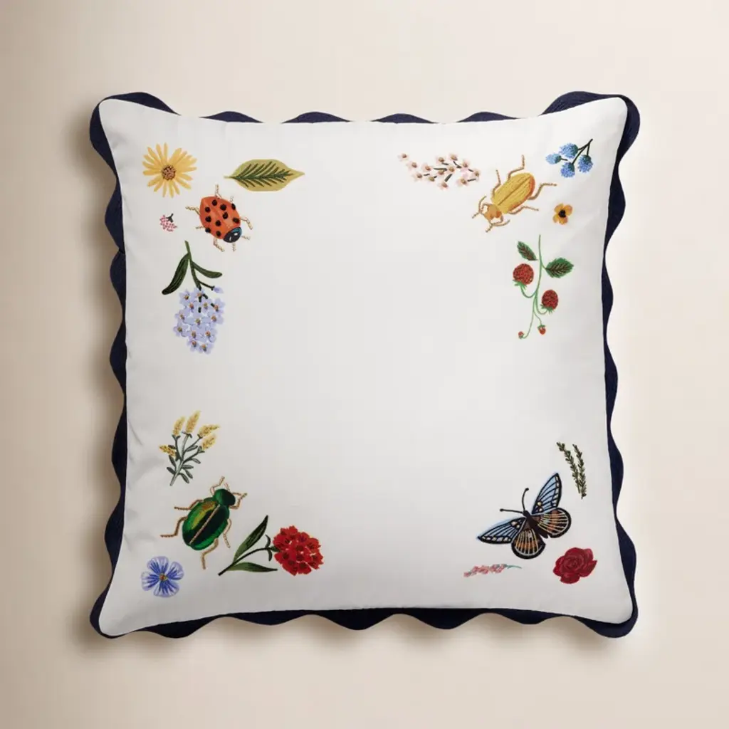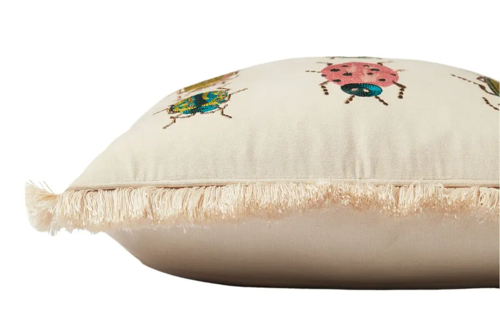 The Critters Pillow showcases a soft natural background adorned with a vibrant mix of colorful patterns. This playful design adds a cheerful and inviting touch to any space while ensuring comfort with its plush texture.
