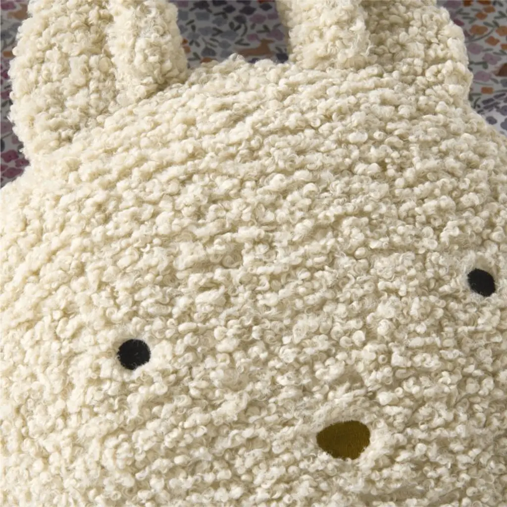Cuddle Oatmeal Sherpa Bunny Face Embroidered Kids Throw Pillow