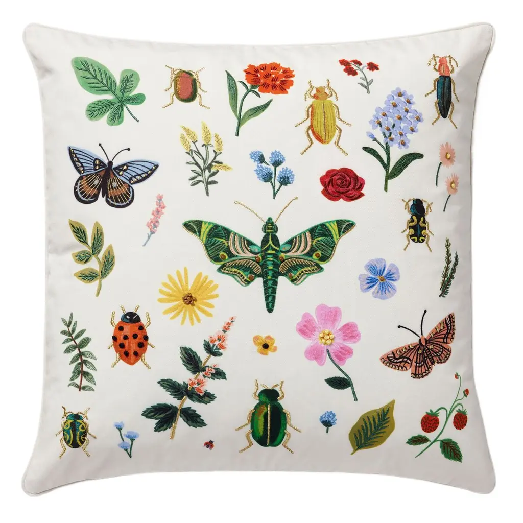 Inspired by the tiniest treasures in nature, this Curio pillow is accented with metallic embroidery and French knots for extra dimension. Part of the Rifle Paper Co. x Loloi collection.