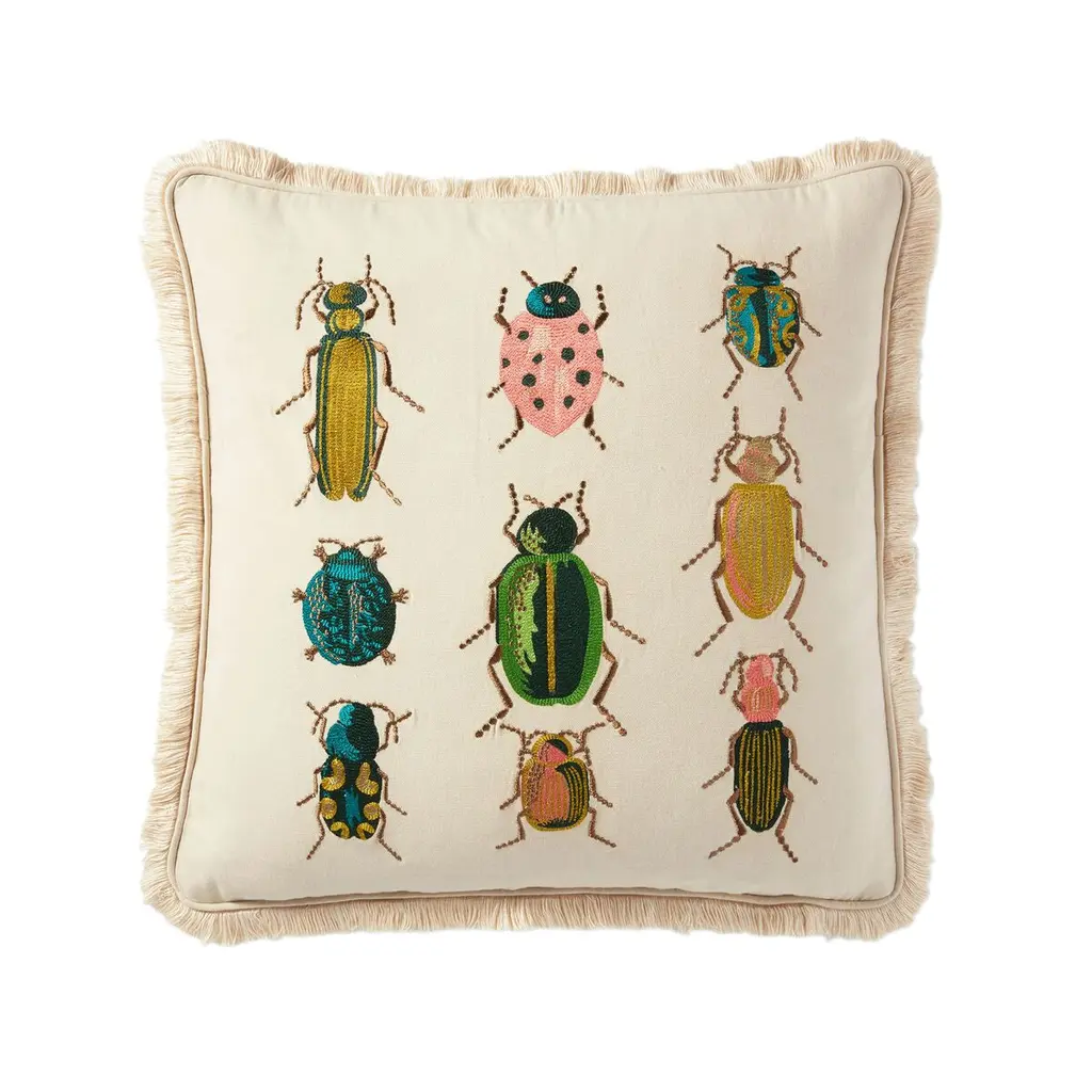 Inspired by the tiniest treasures in nature, this Curio pillow is accented with metallic embroidery and French knots for extra dimension, and finished with a navy scalloped border. Part of the Rifle Paper Co. x Loloi collection.