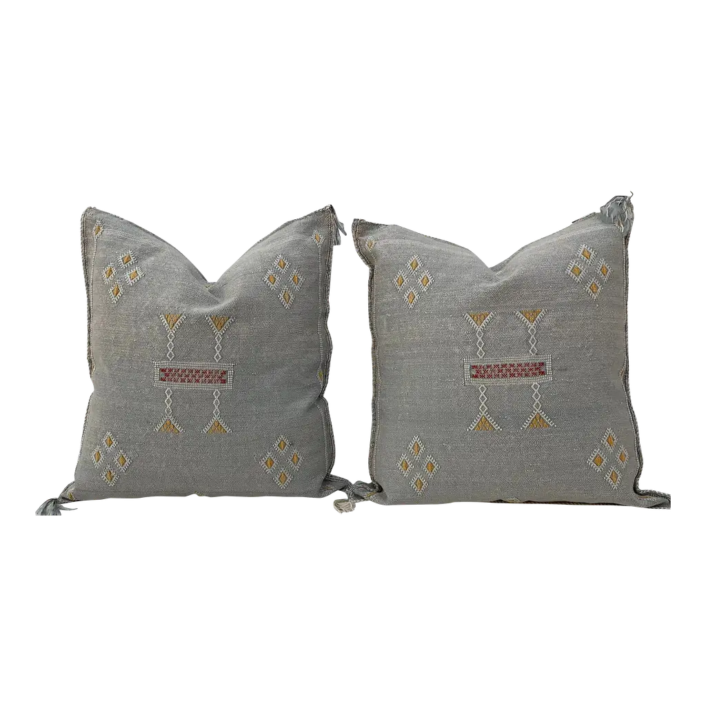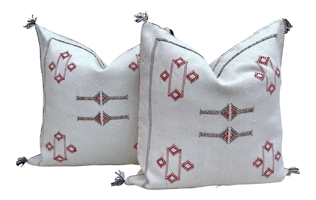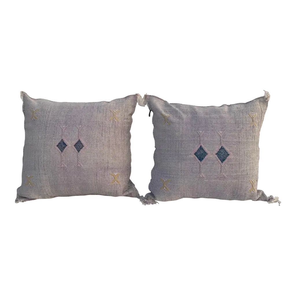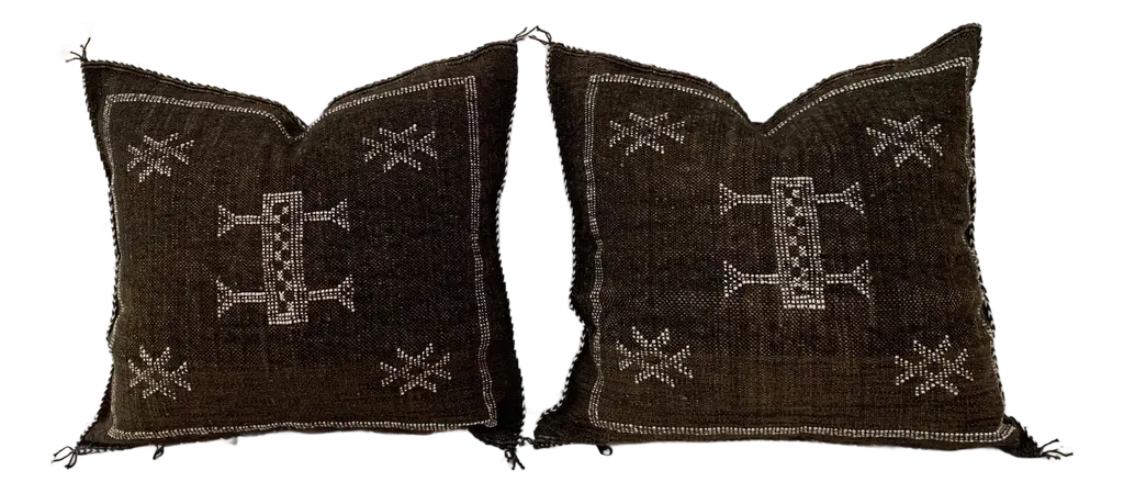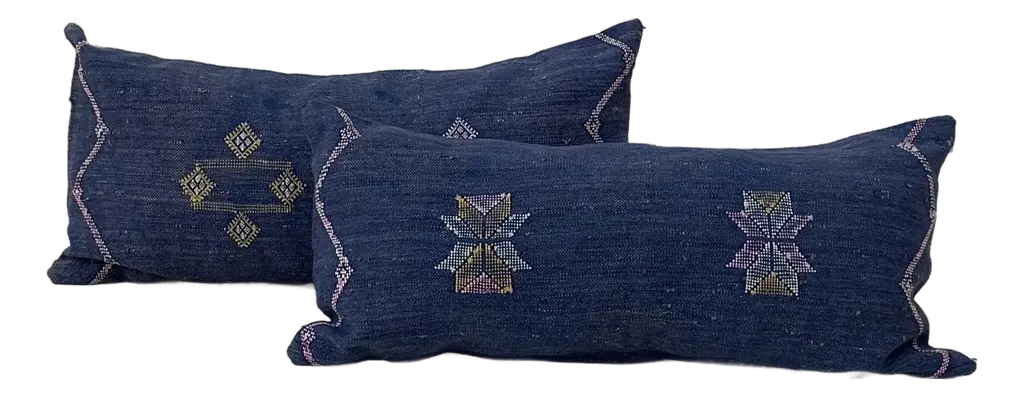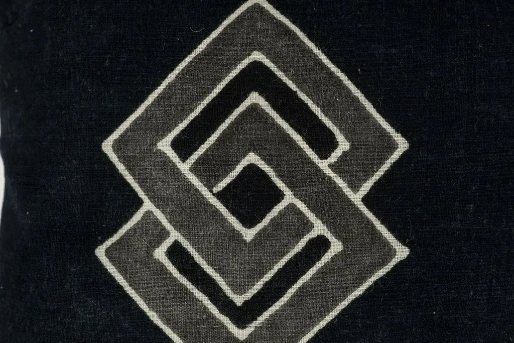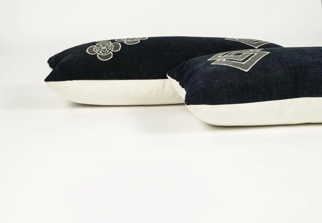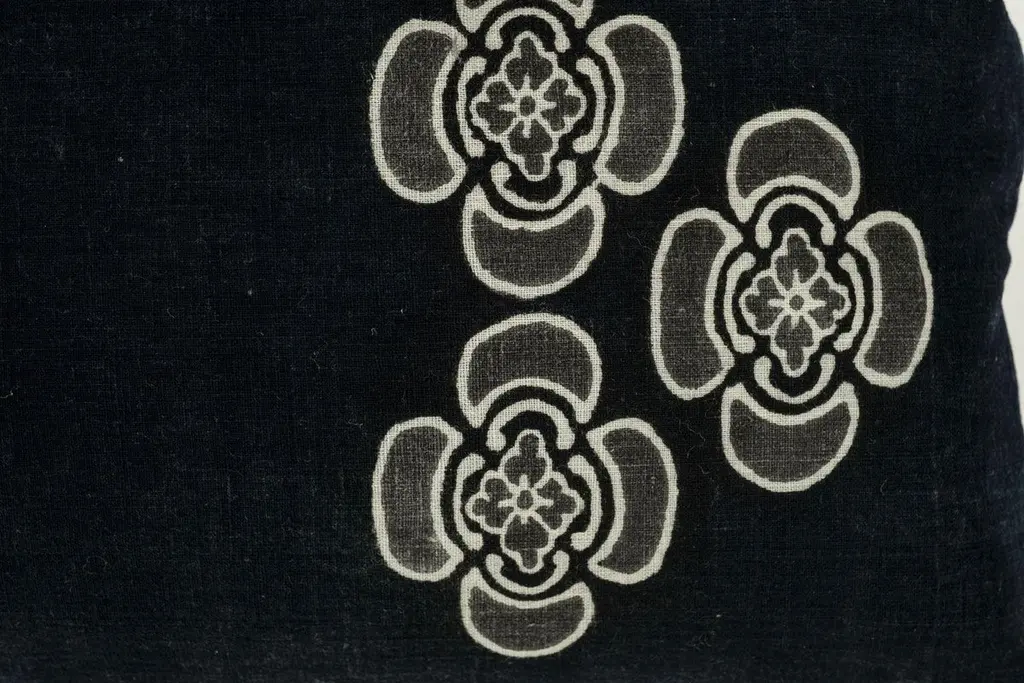 Cushion from antique Japanese hand-spun cotton fabric (Length of Tsutsugaki-dyed cotton with repeated motifs from early 20th century). Two cushions available and sold individually. Priced $680 each.