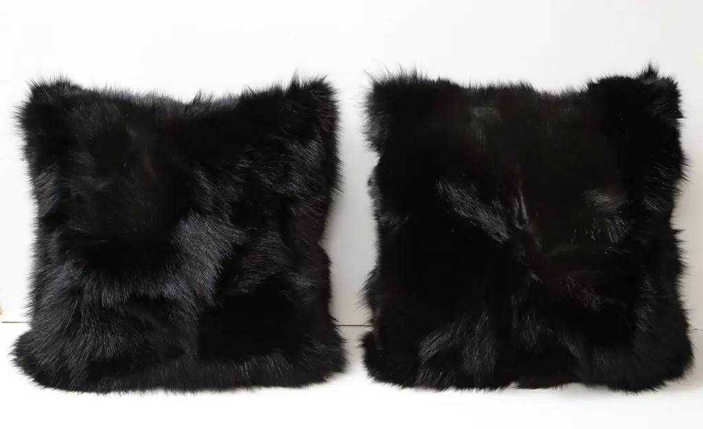 Custom Double Sided Toscana Shearling Pillow In Black Color