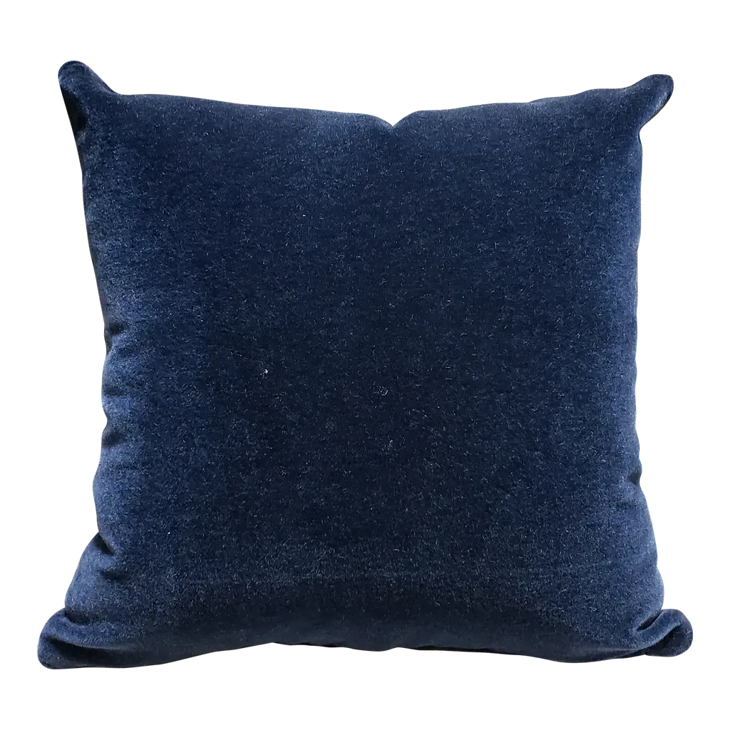 Custom 18" square genuine shearling pillow in dark navy color. Custom orders are available for different sizes and colors.