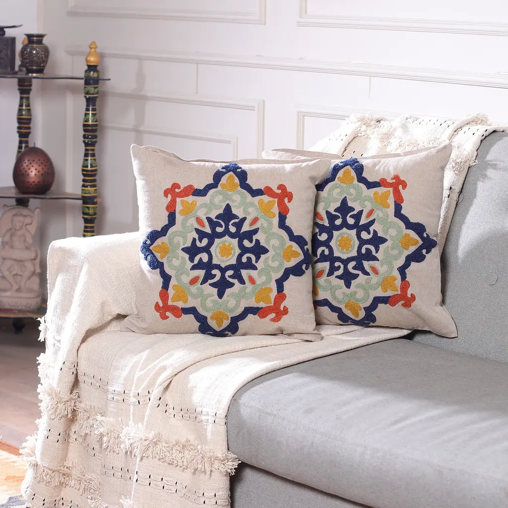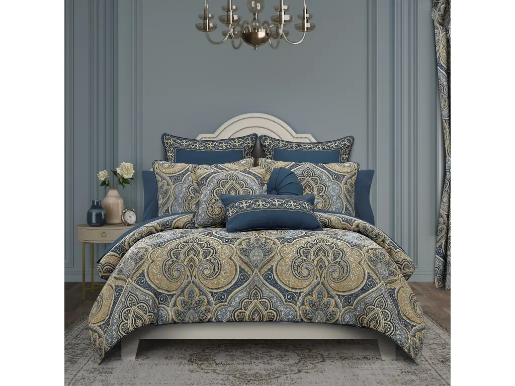 Custom Made Atelier Versace Blue Gold Pillows - Set Of 3