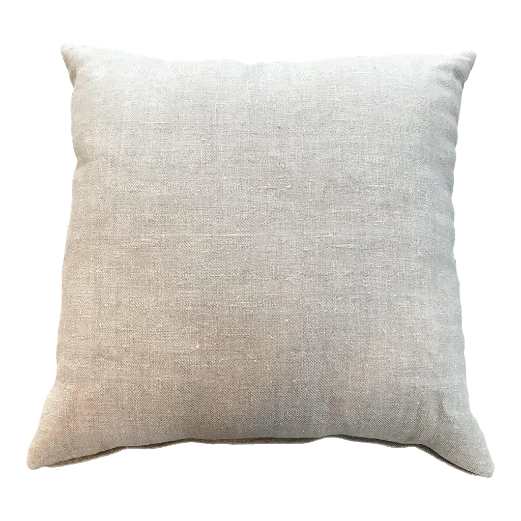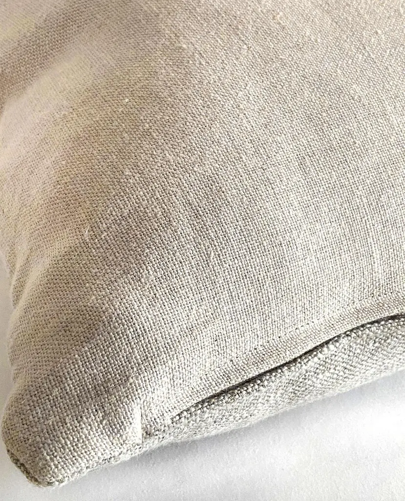 Bloom home custom linen Pillow collectionColor: OT GreigeThe face is a luxurious Greige nubby textured linen. Woven with gray, soft greens, and creamy white.The backside is finished in 100% pure natural Belgian linenZipper closure.Down/ feather insert is included.