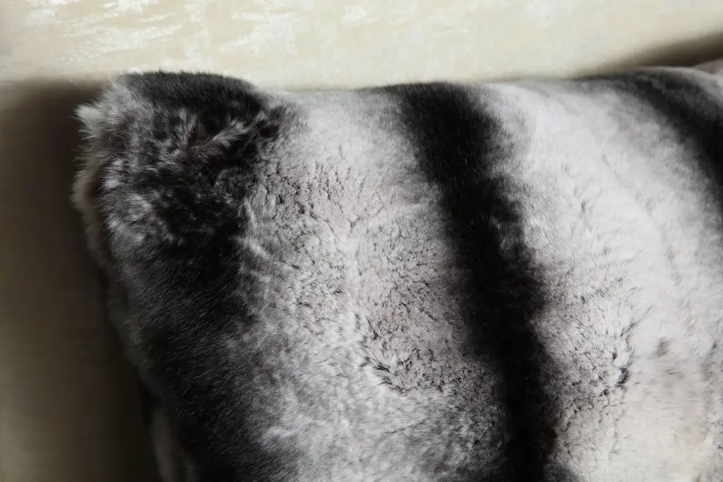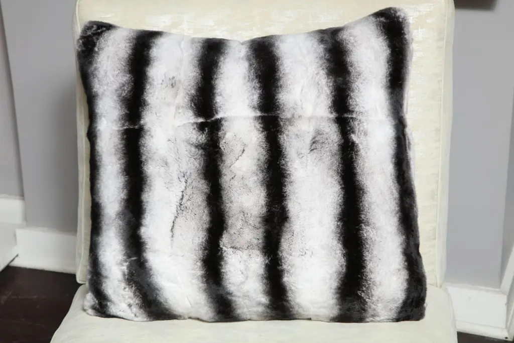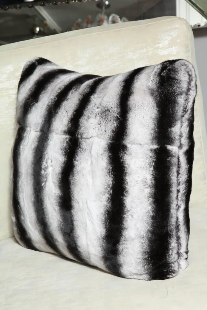 Beautiful made-to-order 22" square black and white stripes Rex rabbit pillow. Custom orders are available for different sizes.
