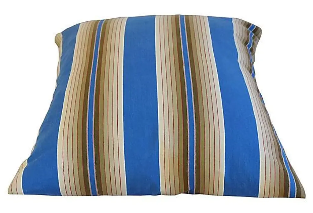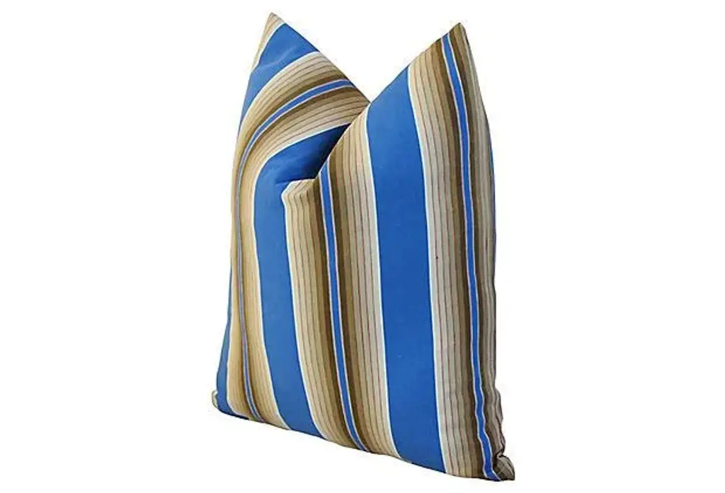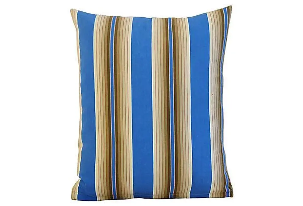 Custom Tailored Blue & Tan French Ticking Striped Feather/down Pillow 16" X 20"