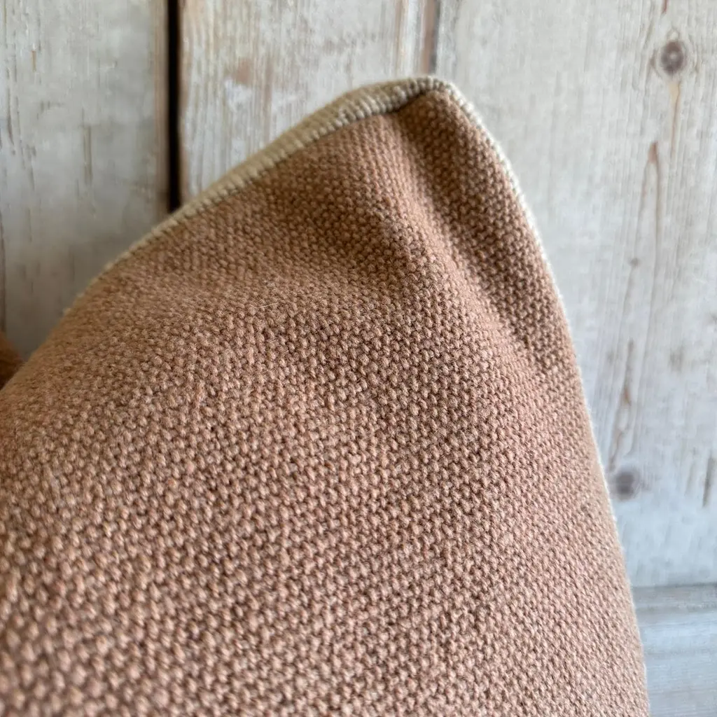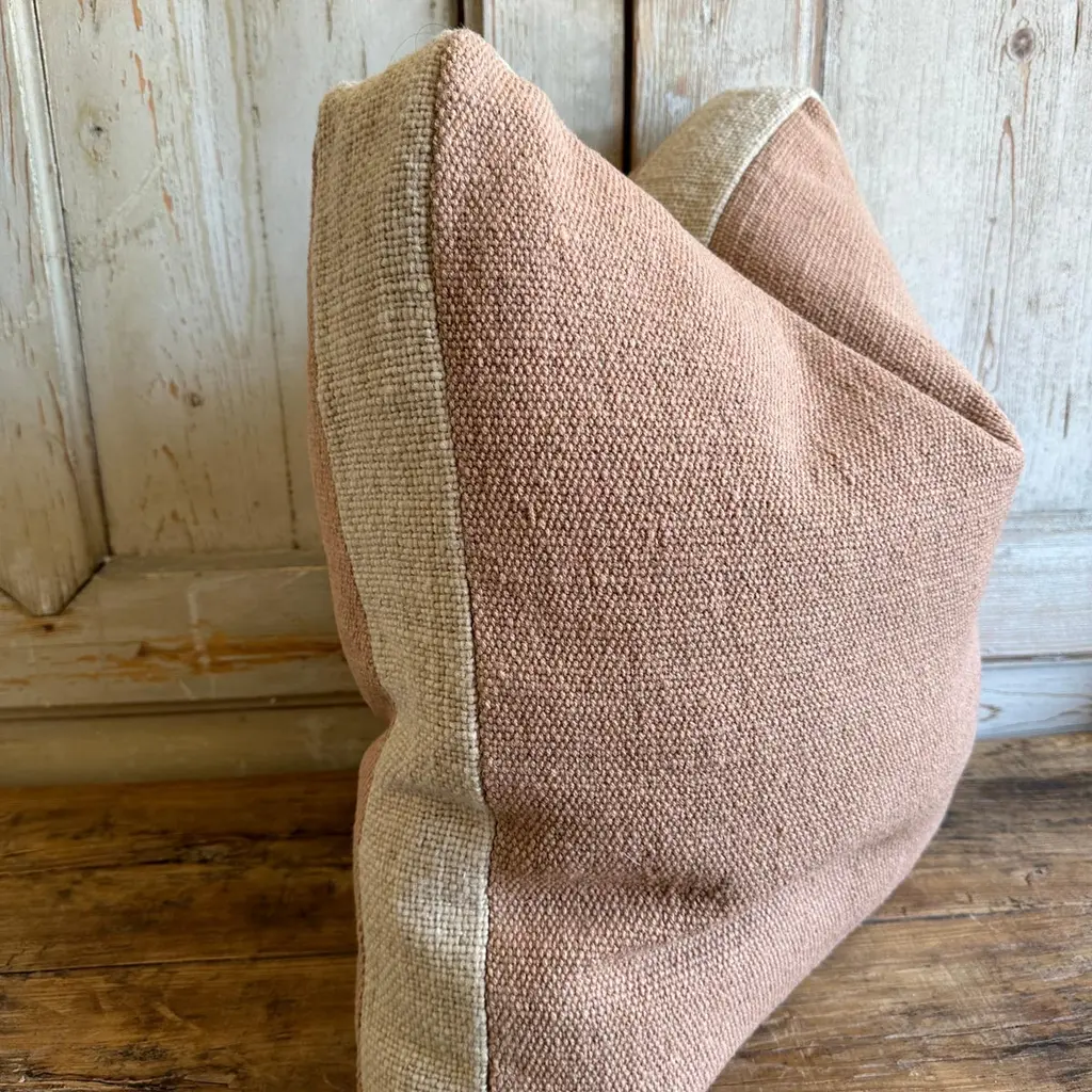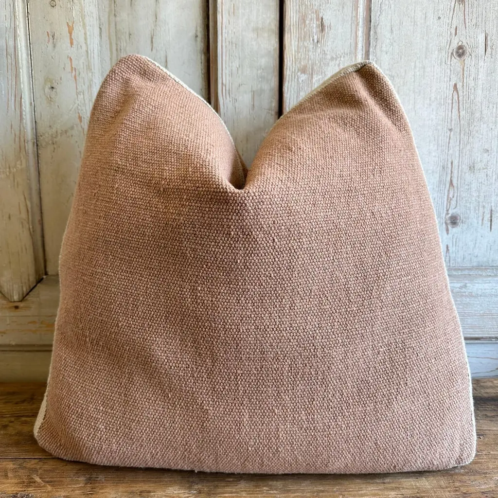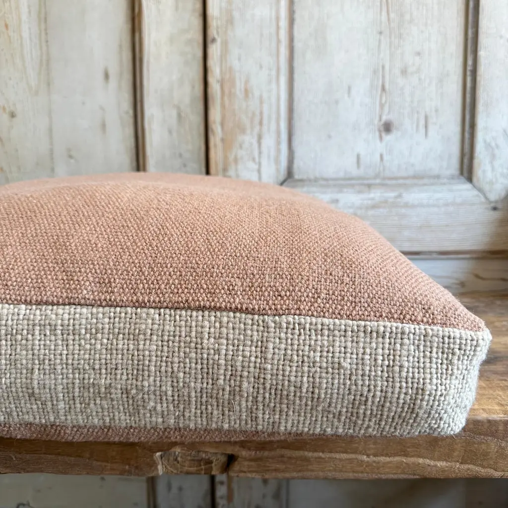 Custom Thick Woven Wool Box Pillow In Blush Nude And Oatmeal
