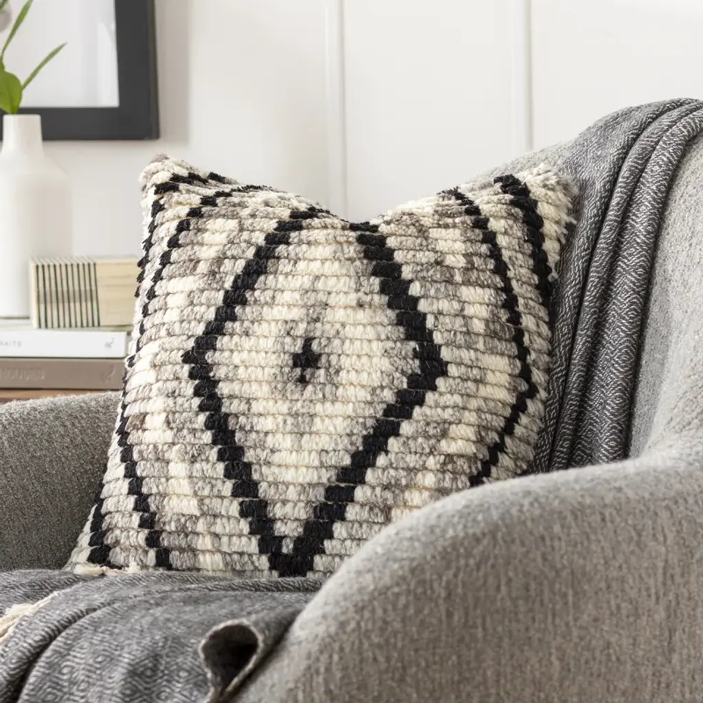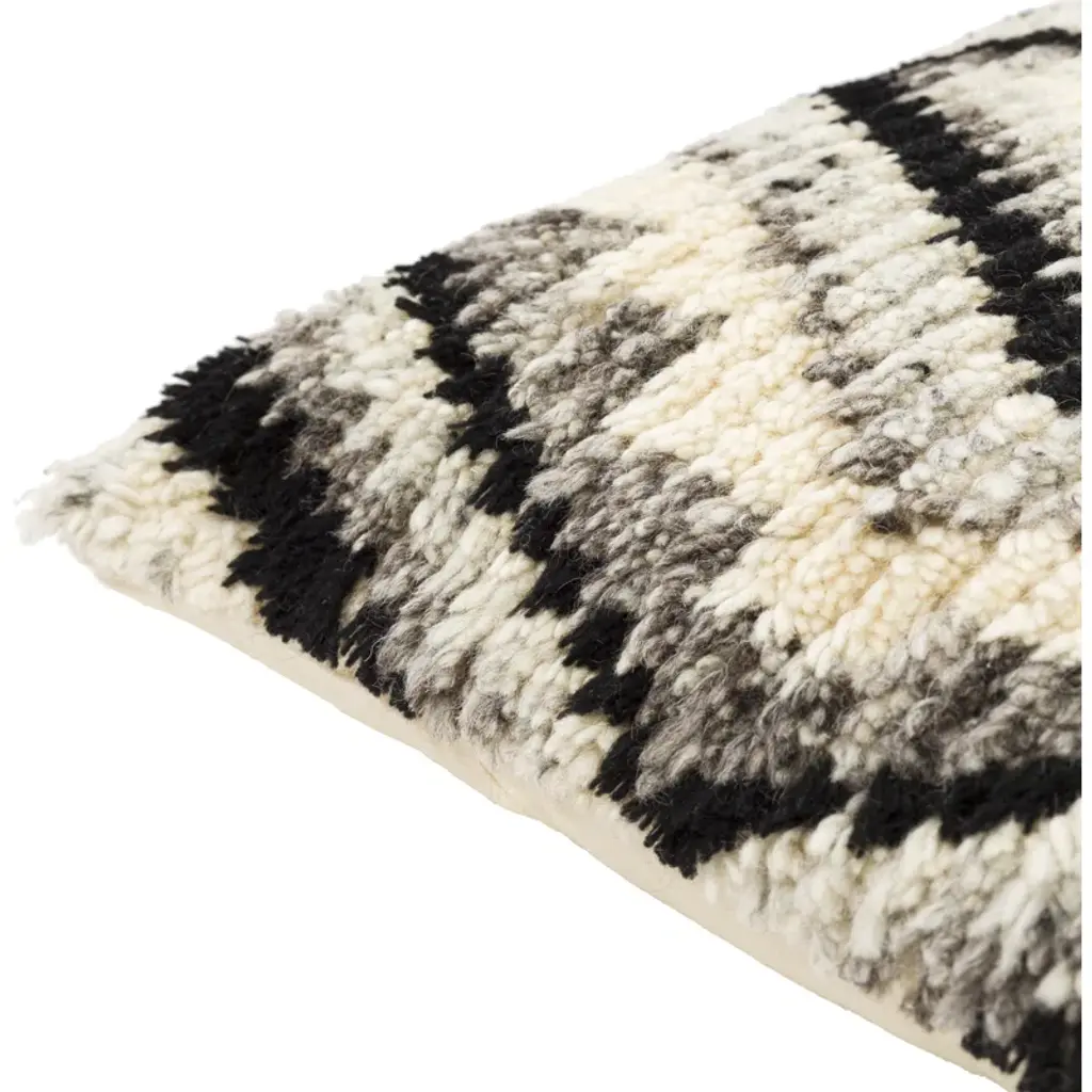 With its modern, moroccan inspired pattern that brings a stylish, global look to any space, this shaggy textured pillow features a stunning hand knotted construction and will seamlessly adapt to a variety of décor styles from rustic or contemporary to traditional or boho! Constructed in India with wool and cotton.