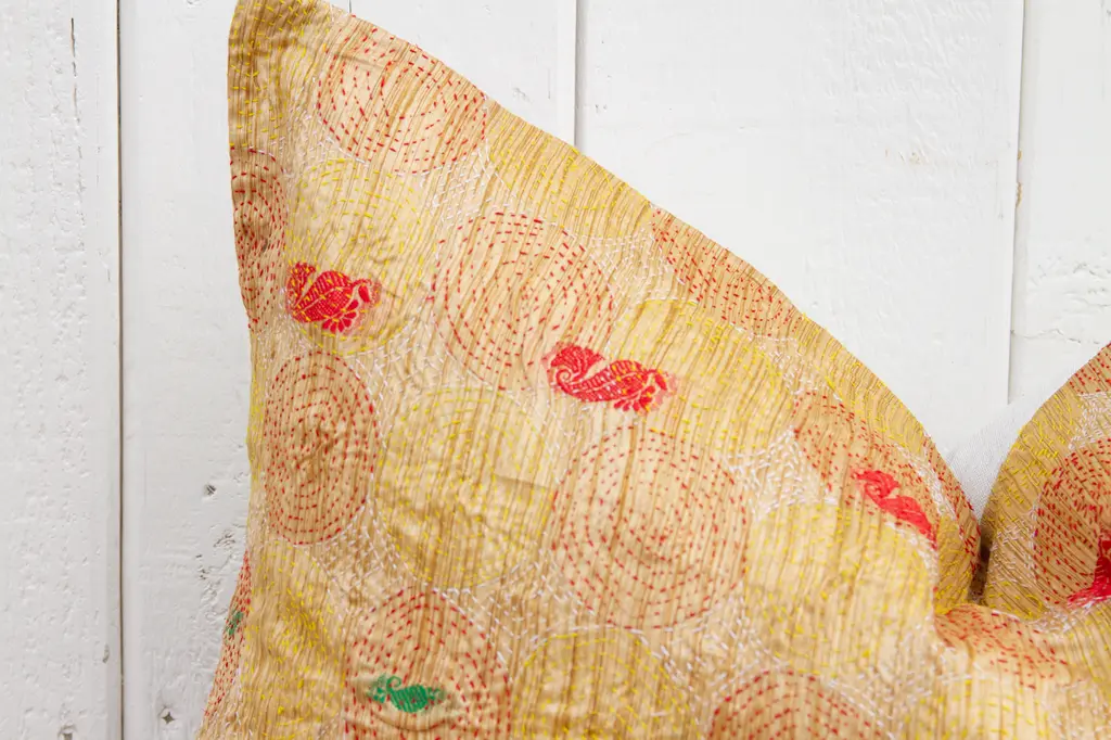 Daffodil Silk Kantha Pillow