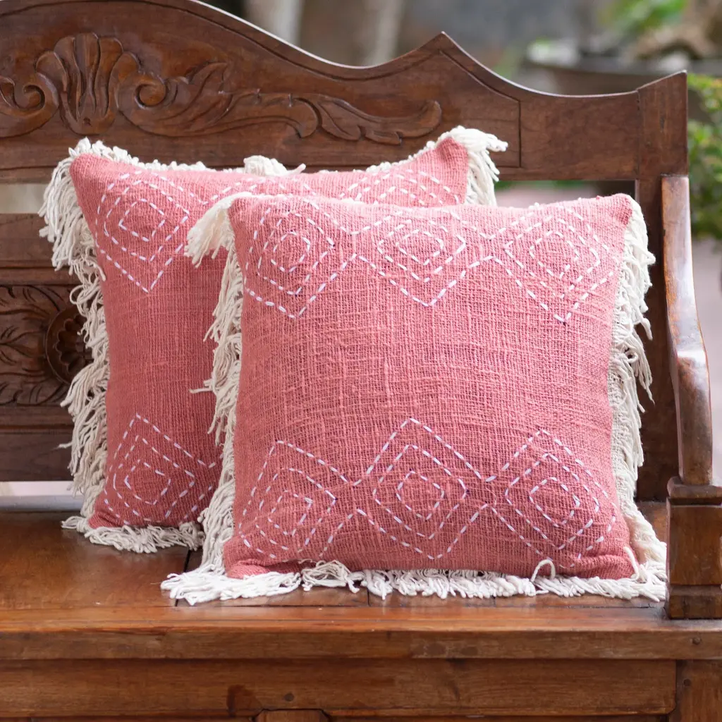 This eye-catching silk Kantha pillow features round Chakra patterns in the traditional characteristic running stitch in vibrant colors, giving it an exuberant look and striking details. With vintage silk and hand-done stitching, each Kantha has a unique handmade touch. Has a hidden zipper closure, pillow insert not included.