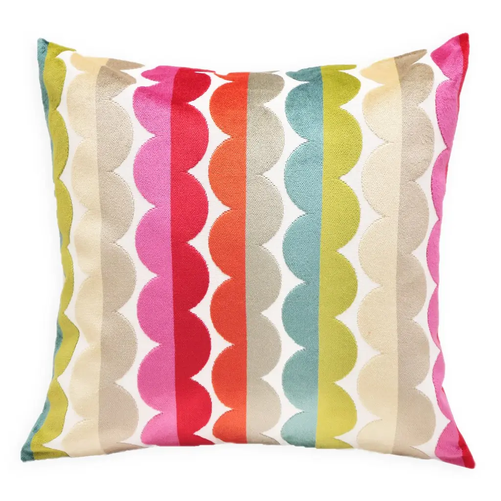 This pillow features Dagger Stripe by Drusus Tabor with a knife edge finish. Created in collaboration with Drusus Tabor, Dagger Stripe evokes the rhythmic geometric forms of Brancusi sculptures. Pillow includes a feather/down fill insert and hidden zipper closure.