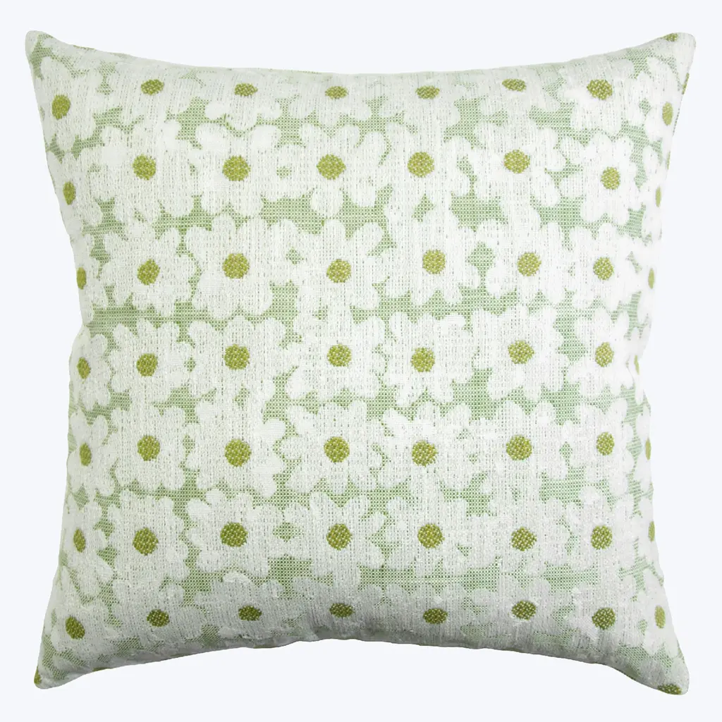 The Daisy Indoor/Outdoor Pillow brings luxurious artistry to your indoor-outdoor seating. The Daisy Throw Pillow Collection features fresh flowers that are sure to delight the eye. This durable, Greenguard-certified performance pillow is soft to the touch, dries quickly, and resists UV fading, stains, and mildew. Includes insert and double-sided, weather-resistant pillow with invisible zipper.